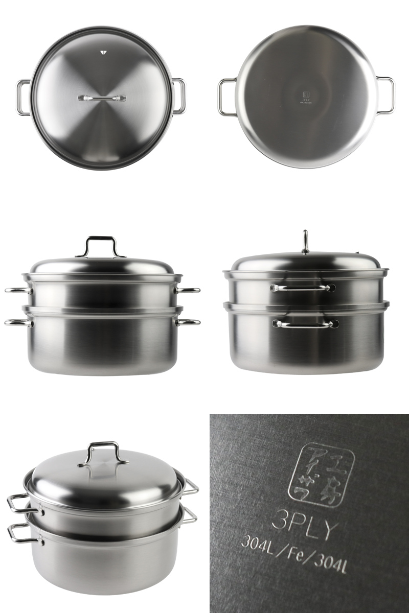| 材質 | 上鍋・蓋:18-8ステンレス鋼(クロム18%、ニッケル8%) 下鍋:ステンレス三層鋼(18-10ステンレス鋼(クロム18%、ニッケル10%)/鉄/18-10ステンレス鋼(クロム18%、ニッケル10%)) |