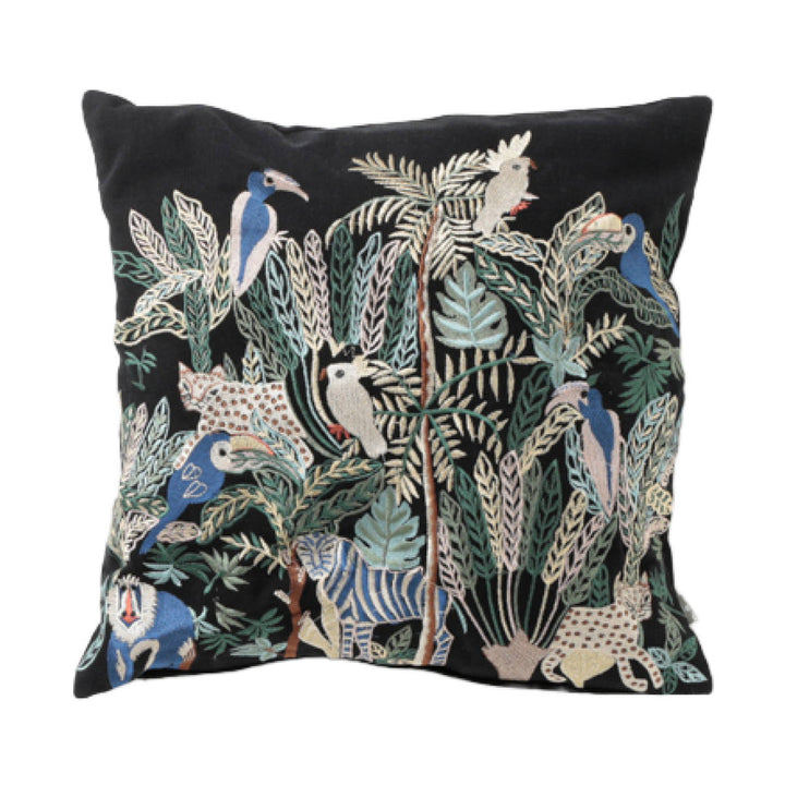ジャングル柄刺繍のクッションカバー 45cm×45cm