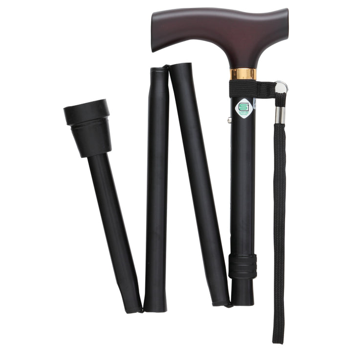 グリップに温かみのある天然木を使用した折りたたみステッキ