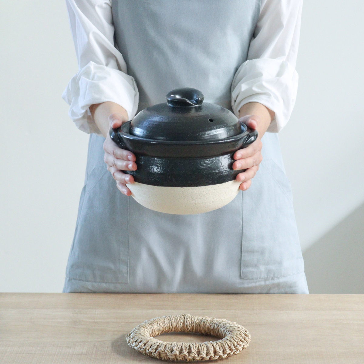 蓄熱性が高いごはん鍋は、 火から下ろしても中のごはんが冷めにくいのが特徴です。炊き上がったごはんをそのまま食卓へ移動できるのも、土鍋ならではの魅力です。
