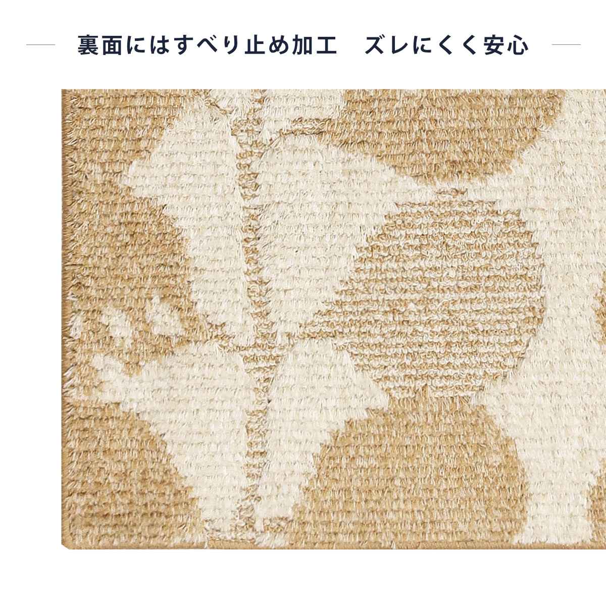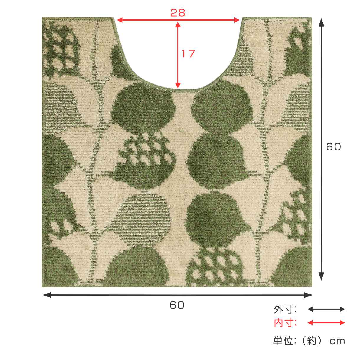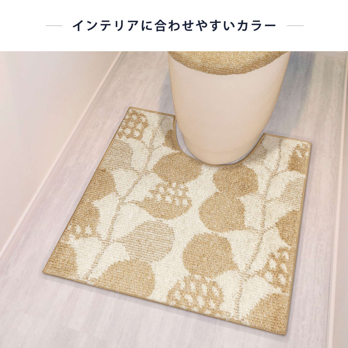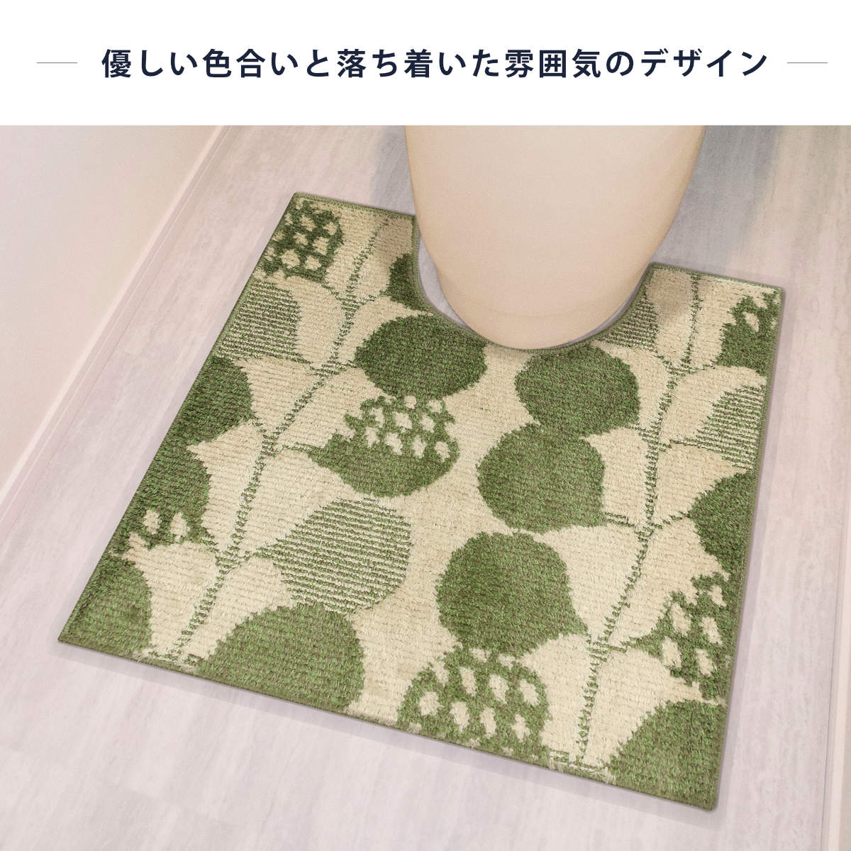 北欧風の可愛い雰囲気のトイレマットです。ふんわりと柔らかい肌触りの糸を使用しています。あたたかみのある落ち着いたボタニカルデザインは、トイレ空間をおしゃれに演出します。