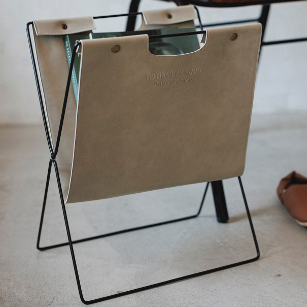 シックで高級感のある合皮素材のマガジンラック