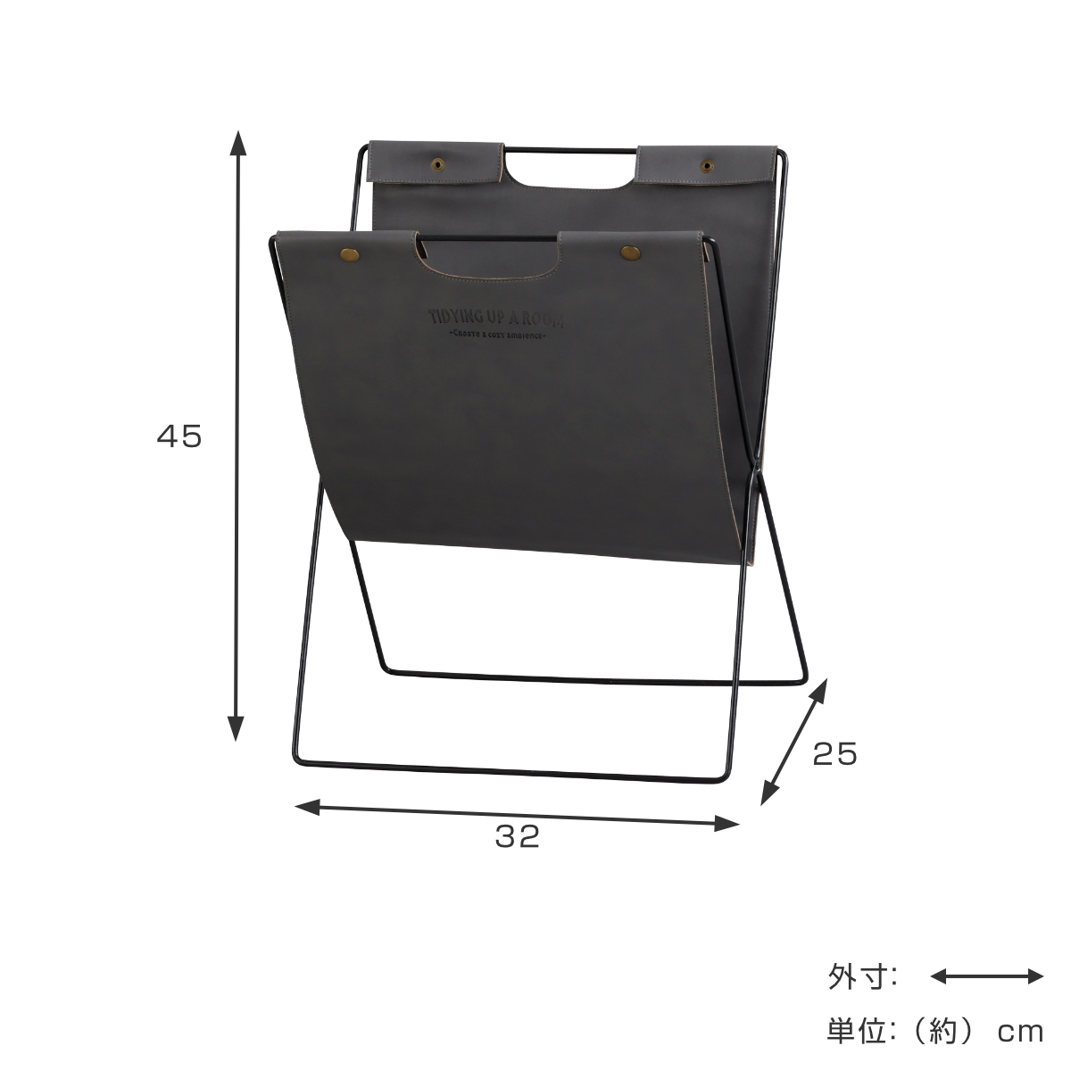 ●高級感溢れる合皮素材のマガジンラックです。