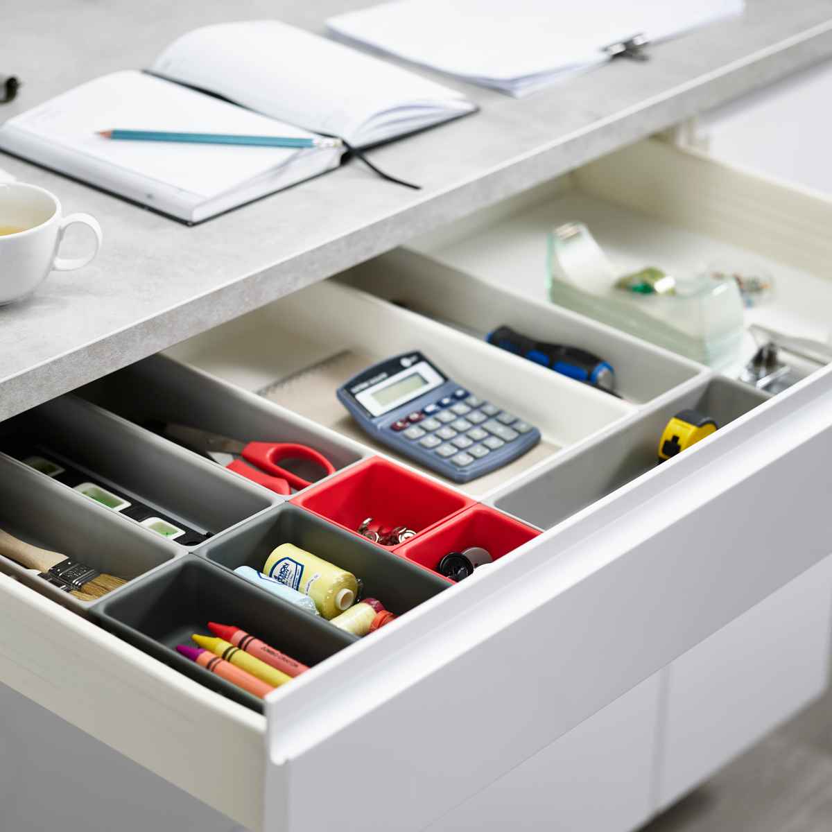 文具や工具、裁縫用品など、種類が多く細々した物の整頓にもおすすめです。デスクや棚の引き出しにセットすれば、必要な物をサッと手に取ることができるので作業がもっとスムーズにできます。