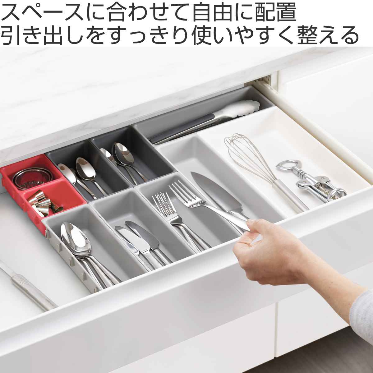 引き出し内をすっきり整頓できるドロワーオーガナイザー・10ピースです。サイズの異なるトレーを組み合わせて自由に配置することができます。また、10個のトレーがセットになっているので分けて使うことも可能です。引き出しの中をすっきり整えて、機能的なキッチンに。