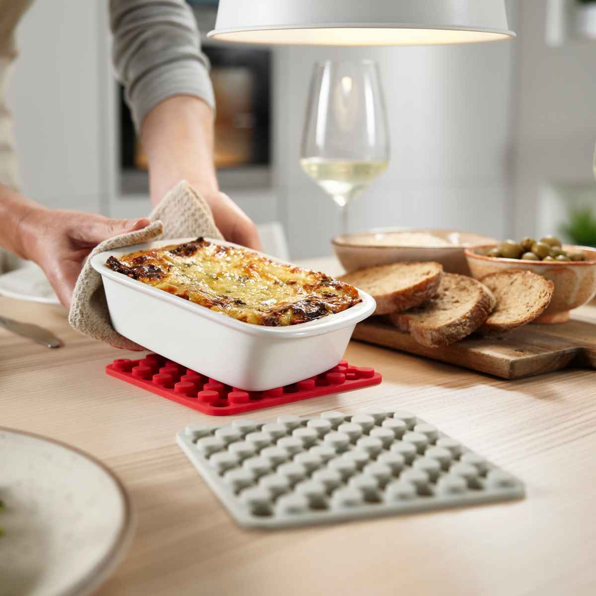 耐熱温度が220度あり、できたてのグラタンや熱々のお鍋の熱からテーブルを守ります。傷防止にも効果的です。また、シリコンなのでさっと洗えてお手入れも簡単。汚れが気になったらすぐにキレイにできるので、衛生面でも安心です。