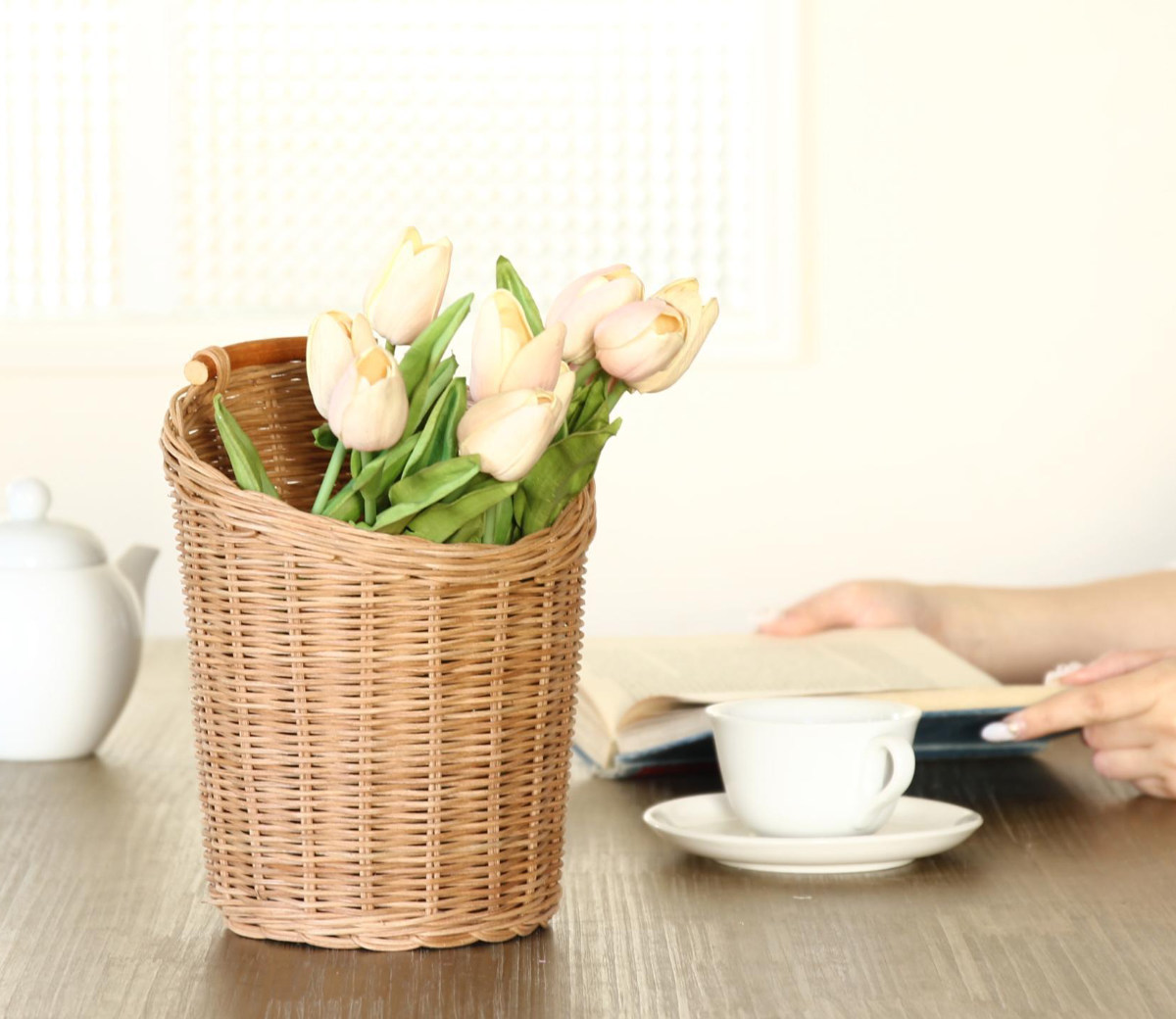 しっかりと細かく編まれたラタン製のバスケットは、一つ一つ手編みして作られているので1つとして同じ物はありません。また天然素材を使用しているため、色味や質感の違いがあります。それぞれの違う表情、素材感を商品の個性としてお楽しみください。