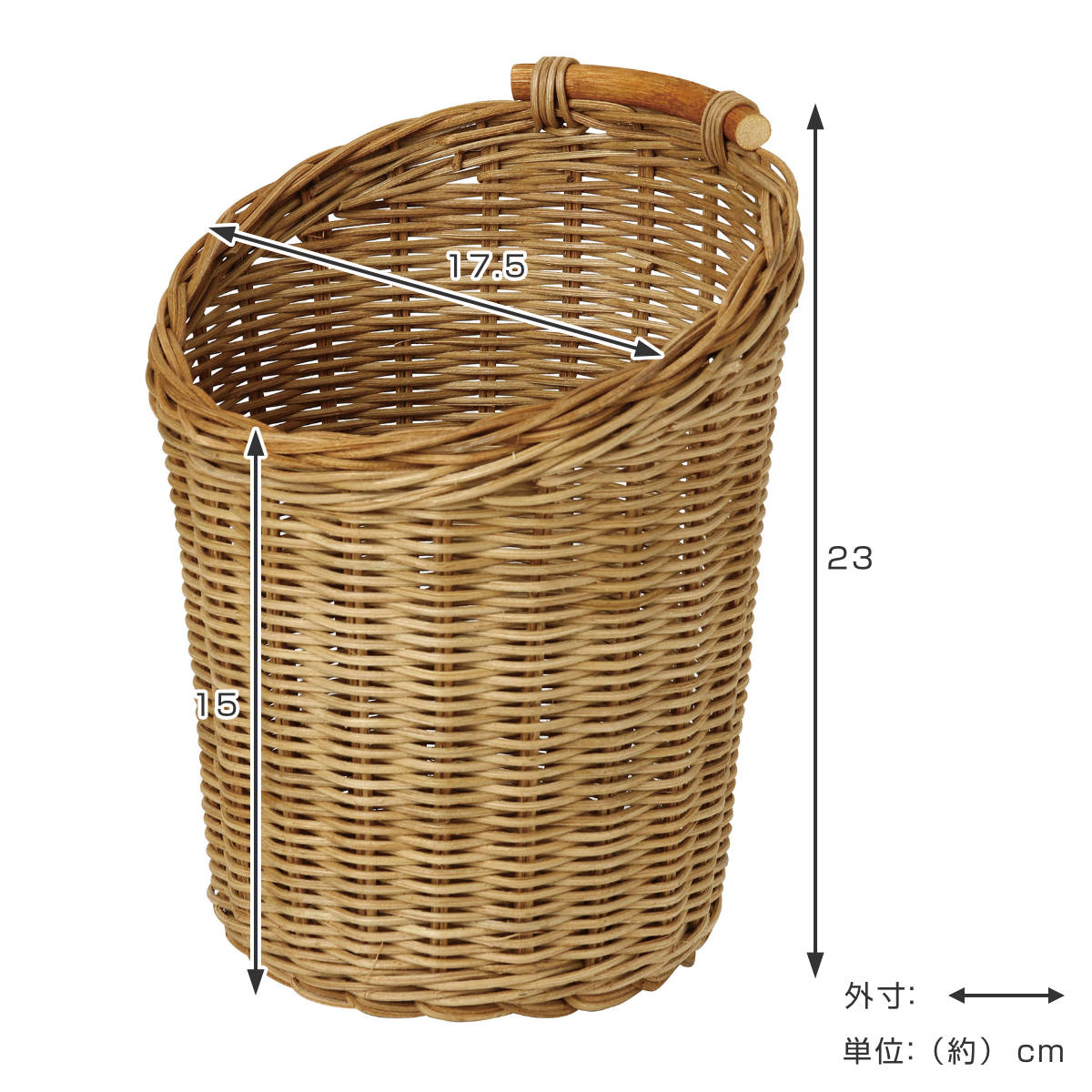 | サイズ | 約 高さ23(cm) 直径:約 17.5(cm) かご手前高さ:約15(cm) |
