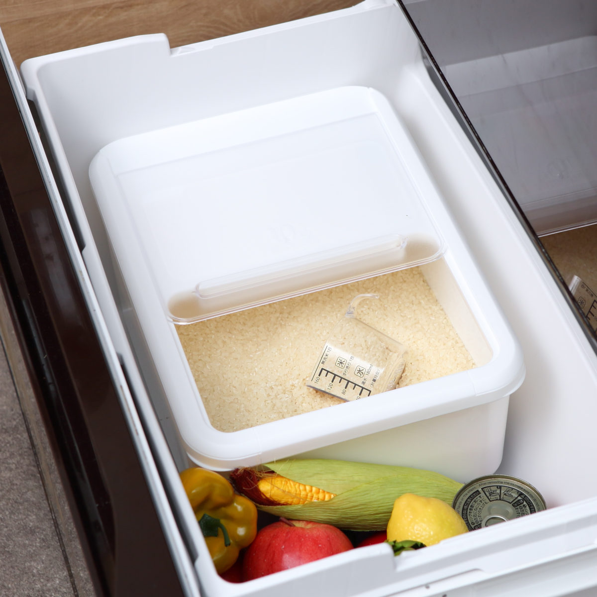 シンプルな形状なので、冷蔵庫の野菜室や冷蔵室にも収納できます。お米を冷蔵庫で保存することでカビや害虫の発生を防ぎ、さらに鮮度を保ってお米を美味しく長持ちさせます。