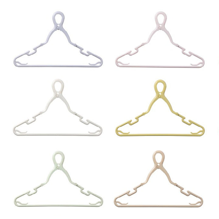 大切なお子様のお洋服の型崩れを防ぐ、ベビー&キッズハンガー6本セット(6色×各1本入)です。肩部分を掴むとコンパクトになるので、子供服の首元を伸ばさず干せます。