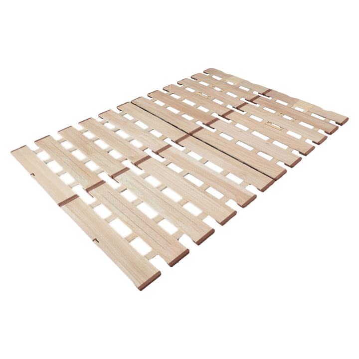 幅の広いすのこを使用することで全体に安定感が生まれます。すのこの表面には細かい凹凸が施されているので、布団が滑りにくく就寝中も快適です。また、特許技術の細いスリットを入れて通気性も確保しました。