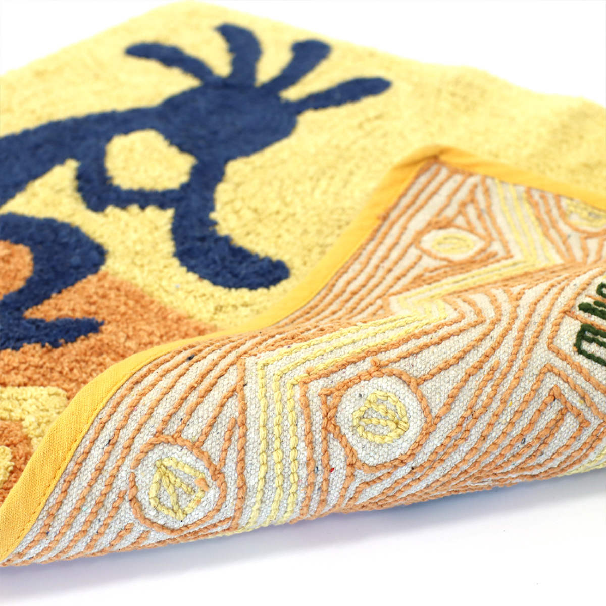 厚みのある柔らかな踏み心地で素足で歩いても嬉しい心地よさです。裏面も同じコットン素材でフローリング等を傷つけにくい仕様です。