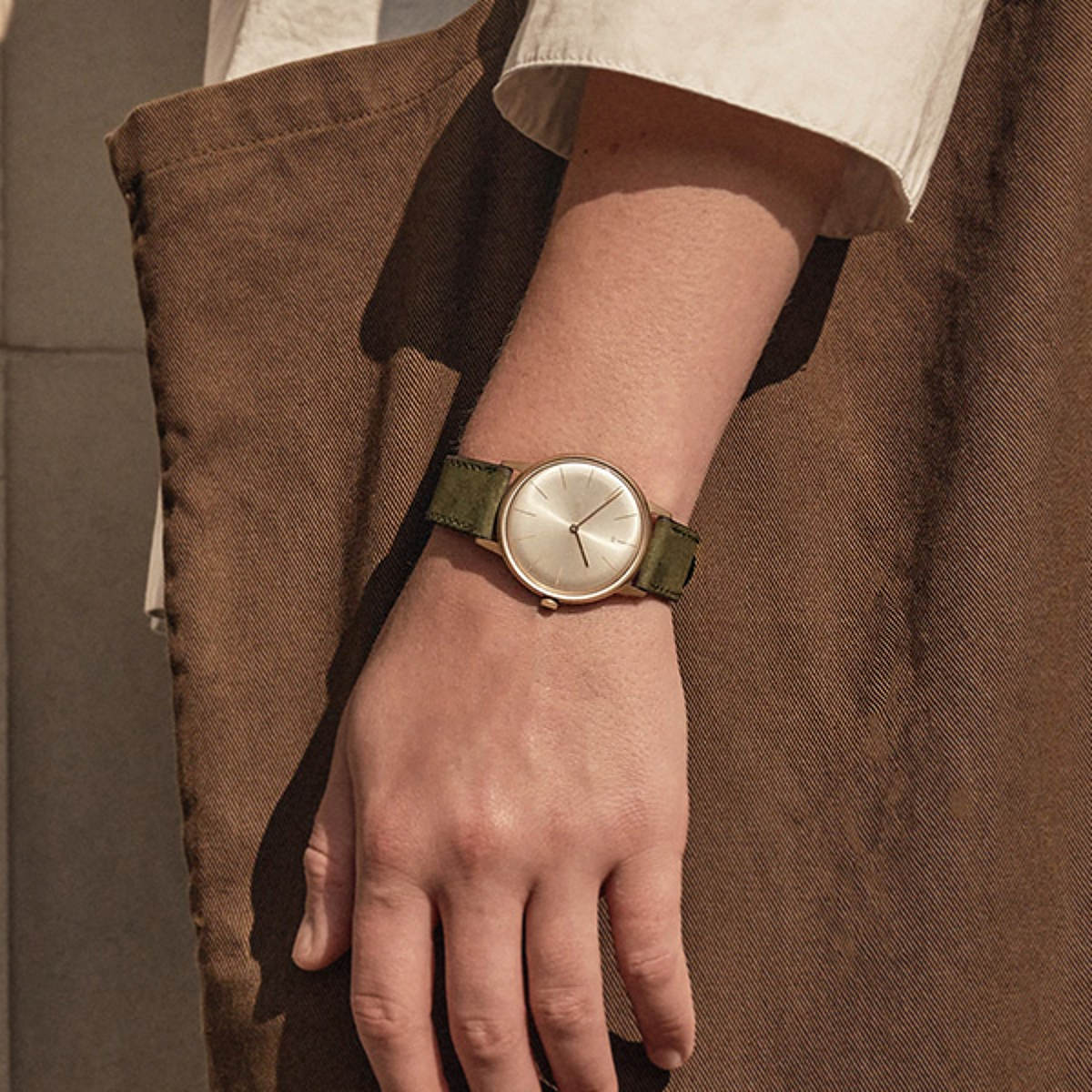 INSTRMNT DRESS WATCH 36MM GOLD / OLIVE NUBUCK LEATHER