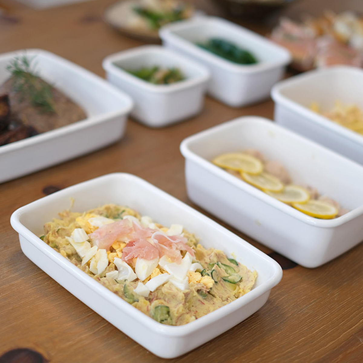 どんな料理にも合うシンプルなデザインと清潔感のあるホワイトシリーズは、下ごしらえや常備菜の保存だけでなく、そのまま食卓に出しても絵になる美しいデザインも魅力です。また琺瑯はニオイ移りもせず汚れも付きにくい為、お手入れも簡単です。