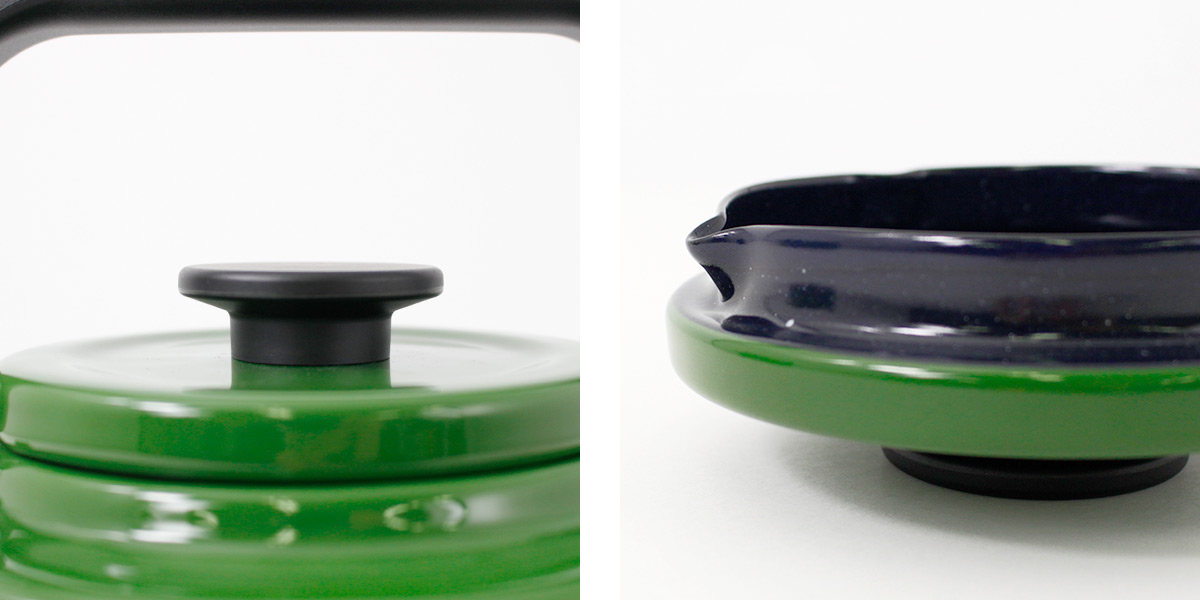 | 材質 | 本体:鋼板(表面加工:琺瑯) 内部:耐熱水性釉薬仕上げ ハンドル:フェノール樹脂 |