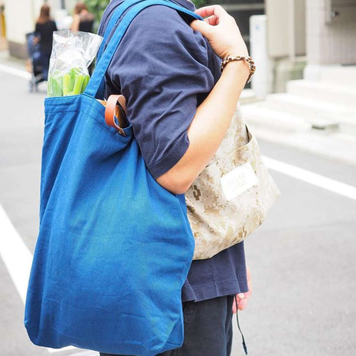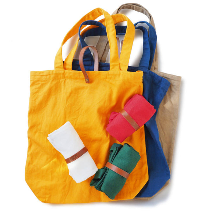 しっかりとしたツイル素材に洗いをかけた柔らかい仕上がりのトートバッグです。A3サイズの書類も、スーパーの買い物もしっかり受け止めてくれる容量がありながらも、使わない時は丸めて小さく収納ができます。エコバッグとして持ち歩く事もできます。