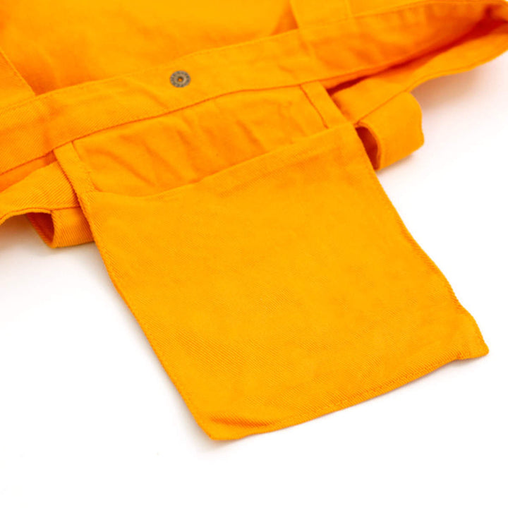 白は洗いを、他カラーは後染めをし、鮮やかな発色に仕上がっています。ファッションの差し色にすると、とても映える色合いです。厚手のコットンで作られており、縫製も日本製ゆえに細部まで丁寧な仕上がりです。