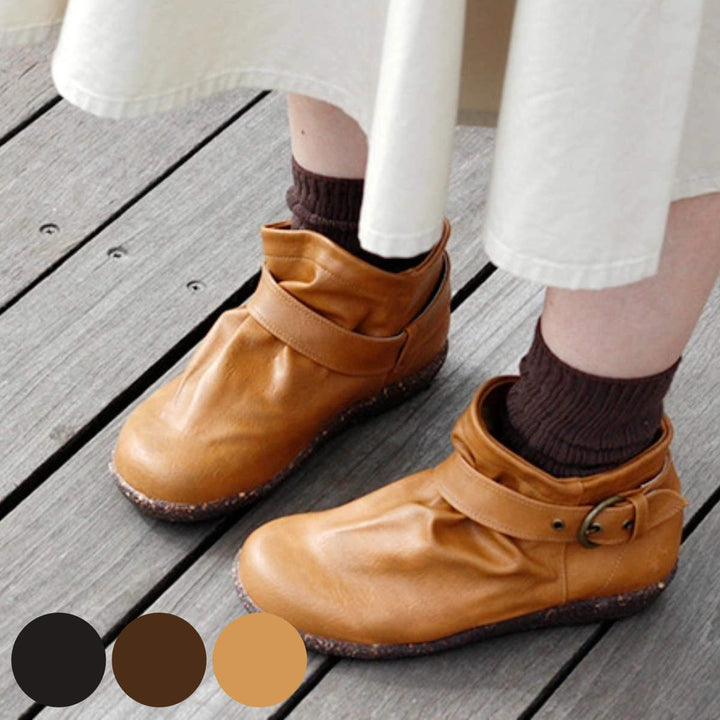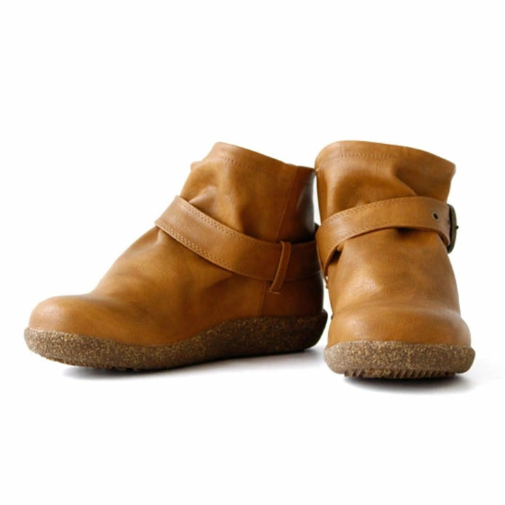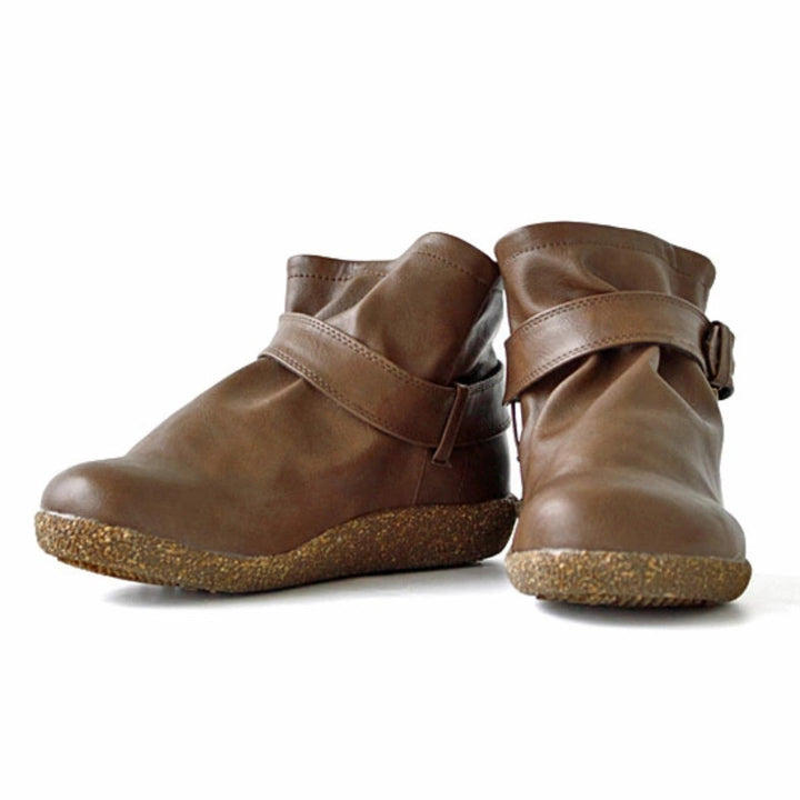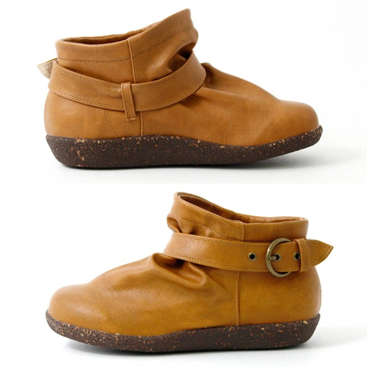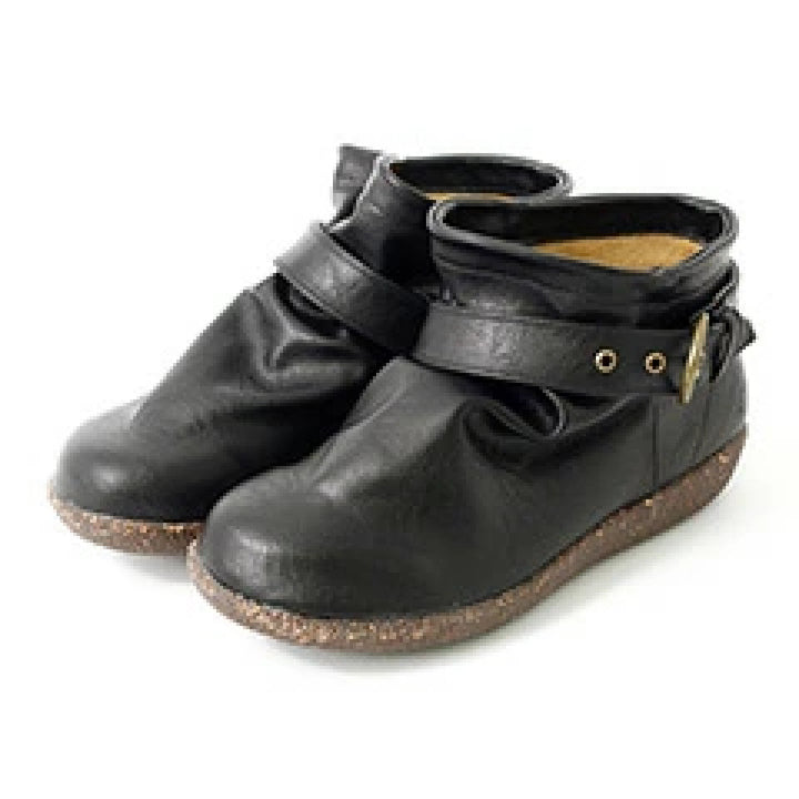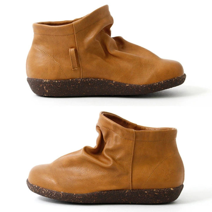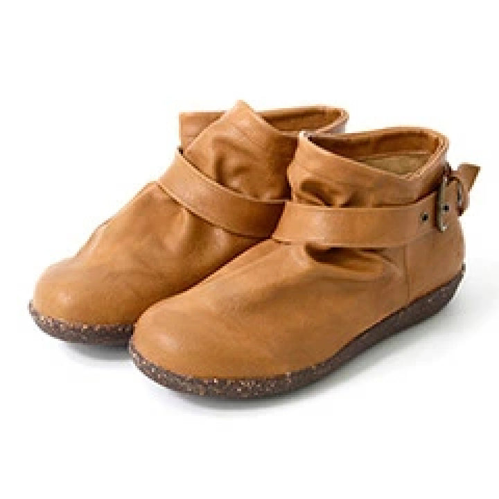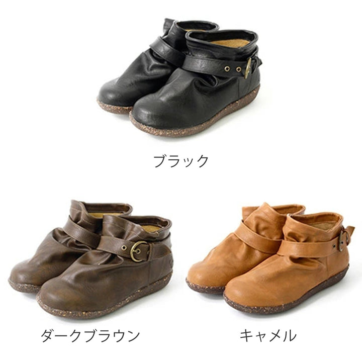 クシュっとなるアンクルと丸いフォルムが可愛いアンクルブーツ