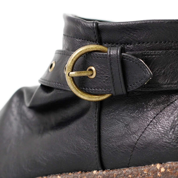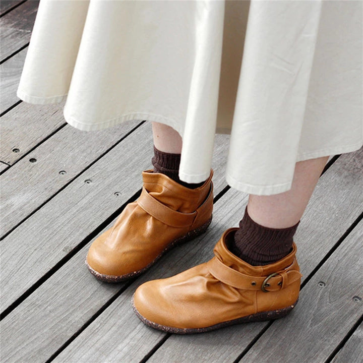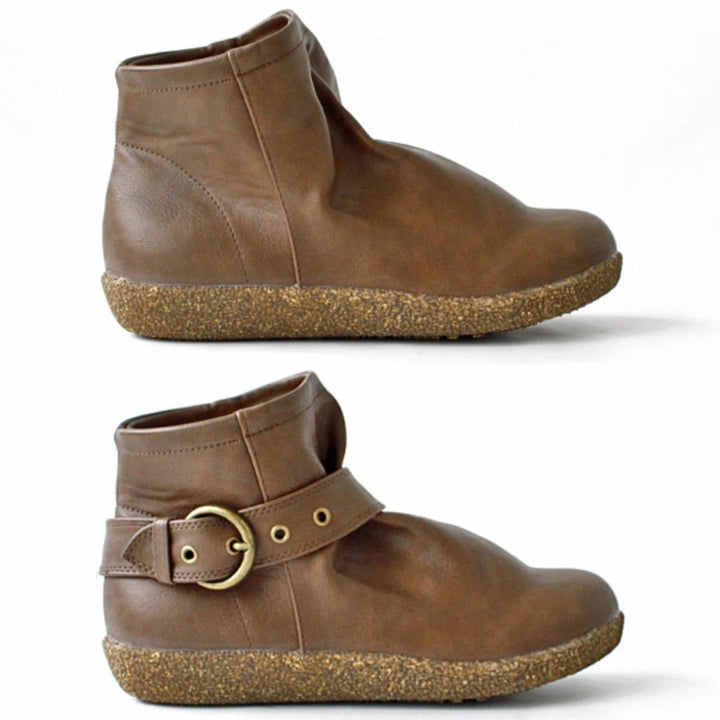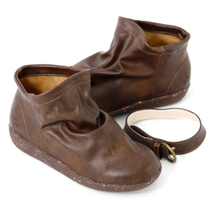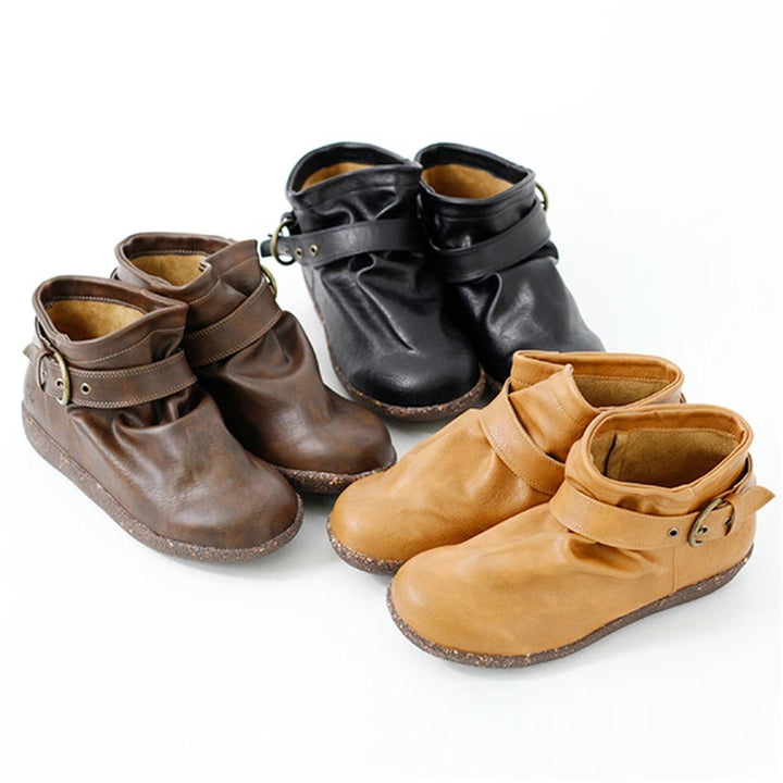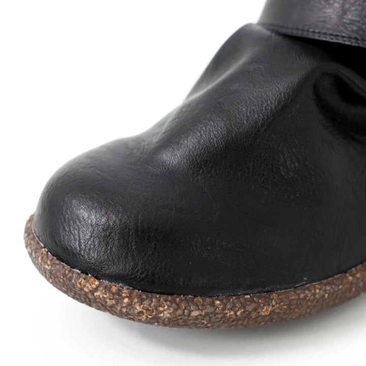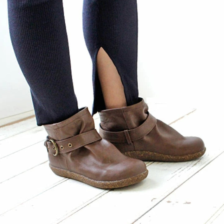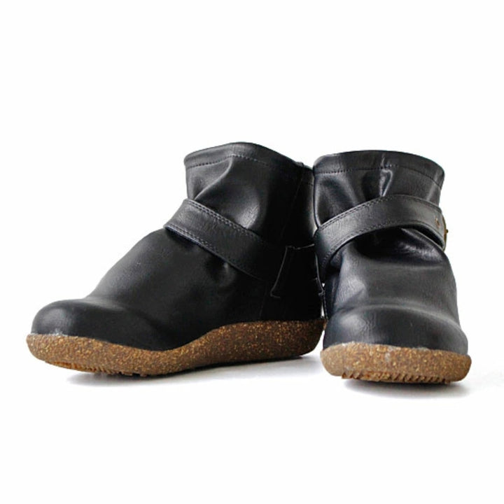 クシュっとなるアンクルと丸いフォルムが可愛いアンクルブーツ