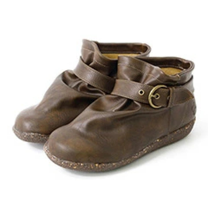 「歩きやすさ」「価格」「形・デザイン」にこだわった、子育てママたちのために作られた靴ブランド『Shake・In cloak(シェイク・インクローク)』のアンクルブーツです。クシュっとなるアンクルと、丸いコロンとしたつま先に可愛らしさを残しているので、大人可愛いコーディネートにぴったりのアイテムです。