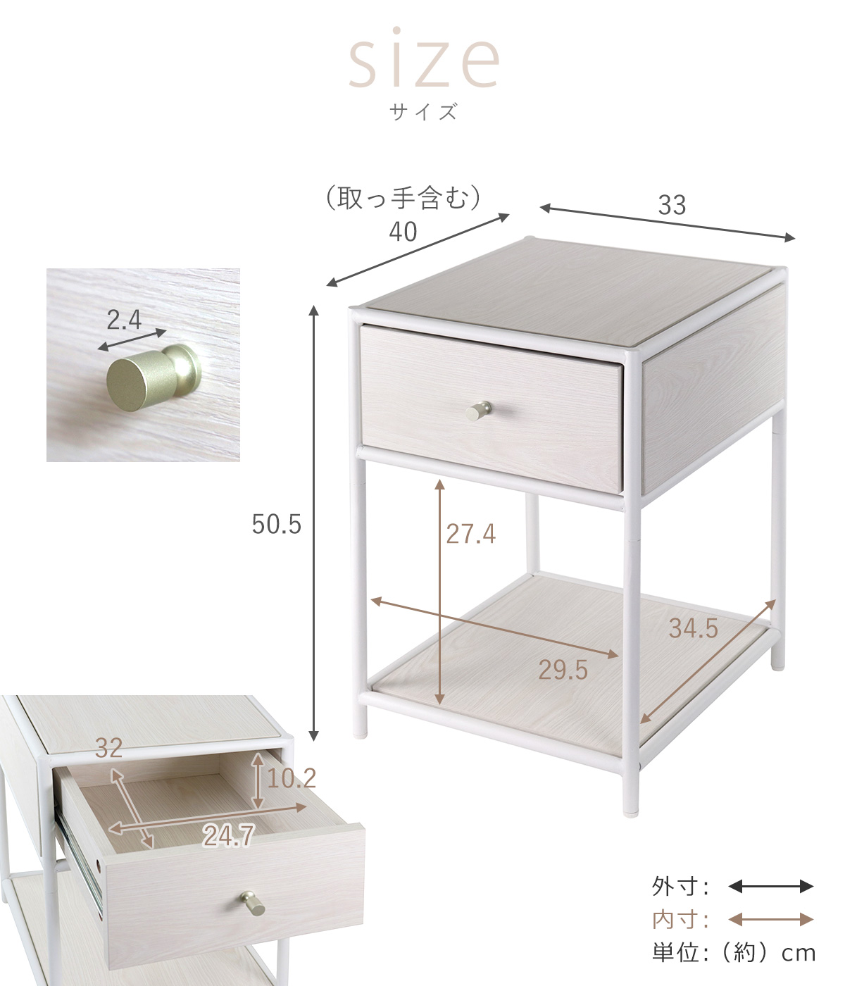 | サイズ | 約 幅33×奥行40×高さ50.5(cm) 天板厚さ:約 1.5cm |