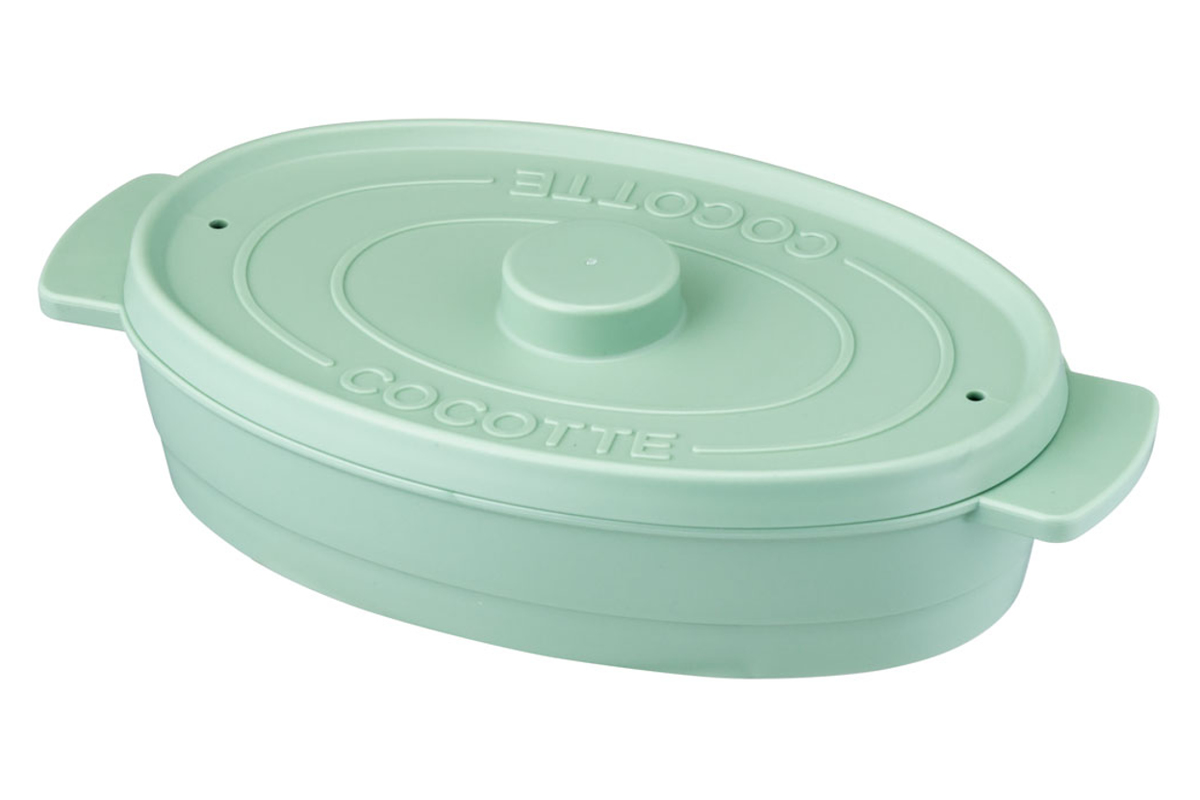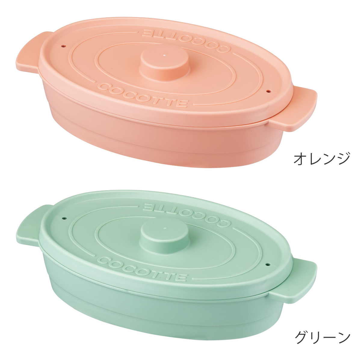 おしゃれなココット風のデザインなので、調理後そのまま食卓に出すことができます。カラーは食卓を彩るオレンジとグリーンをご用意しています。