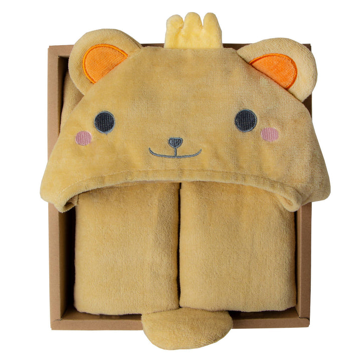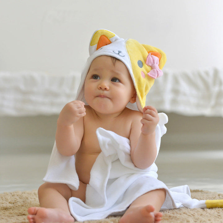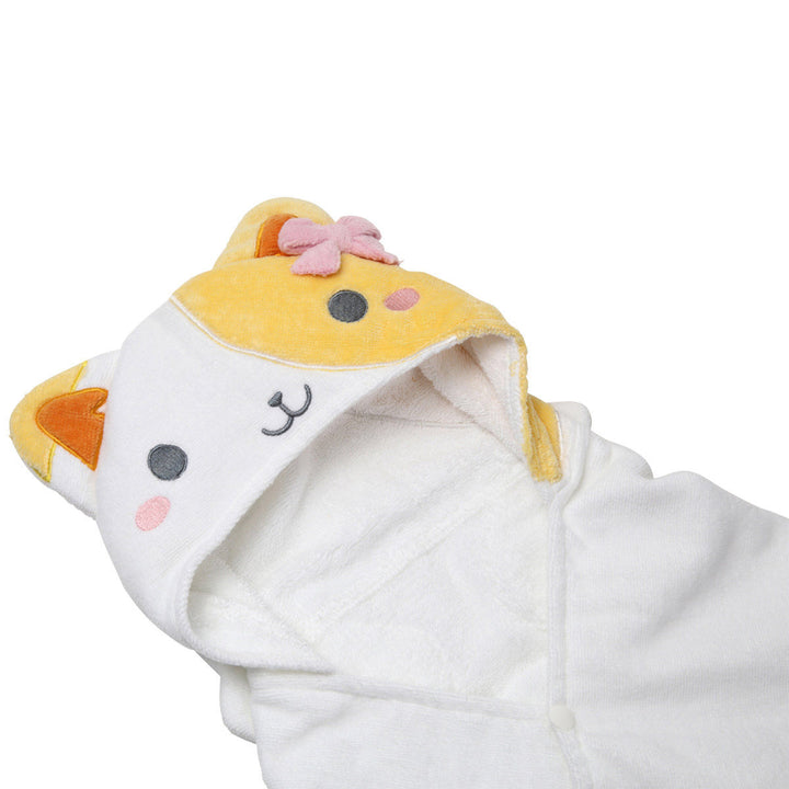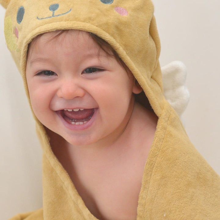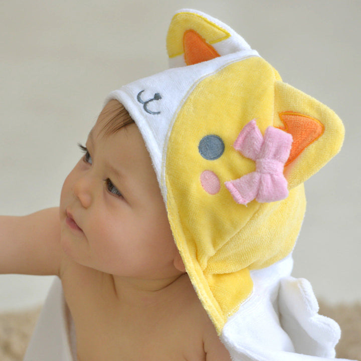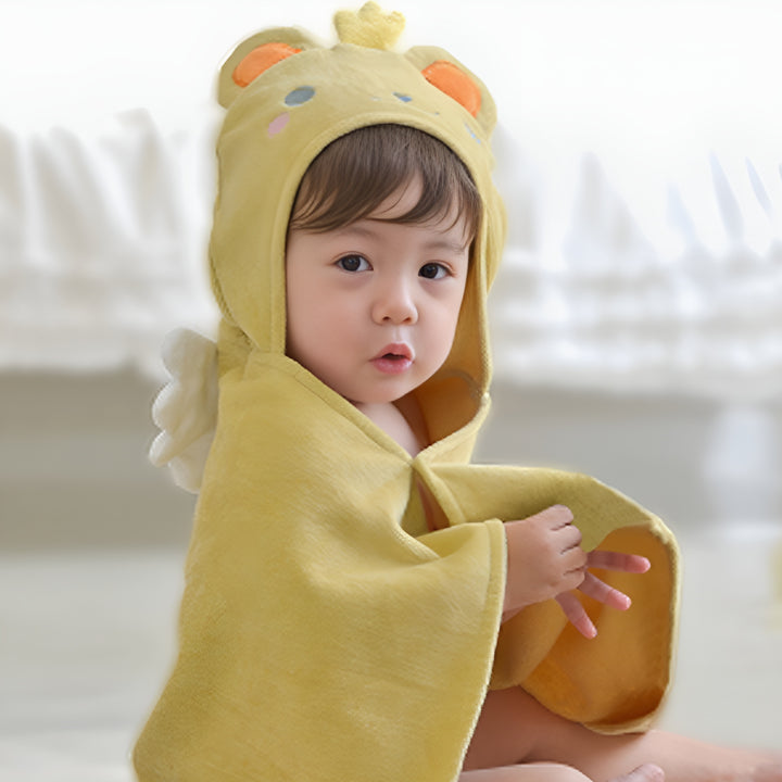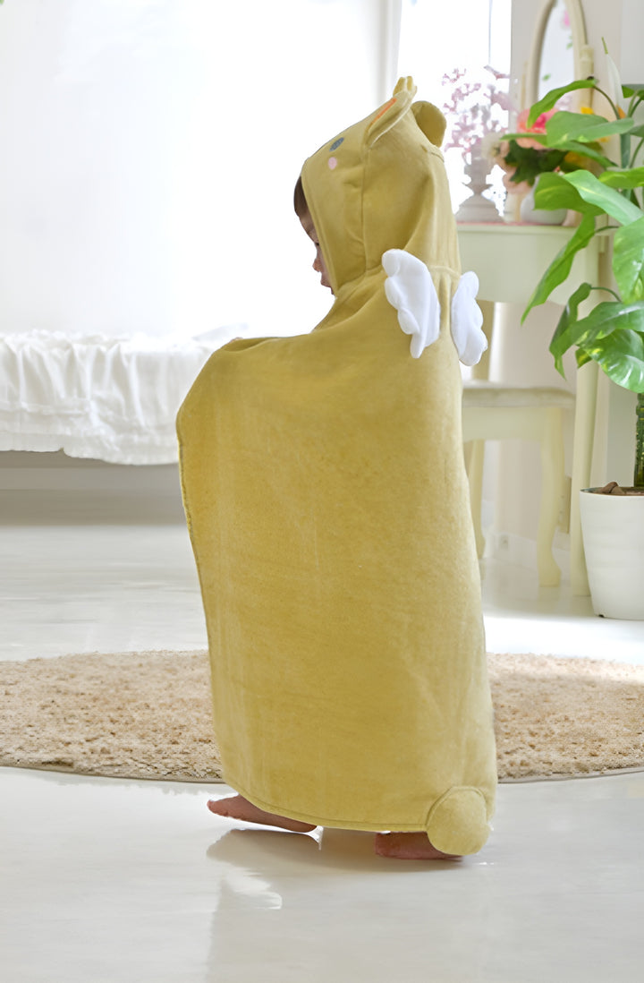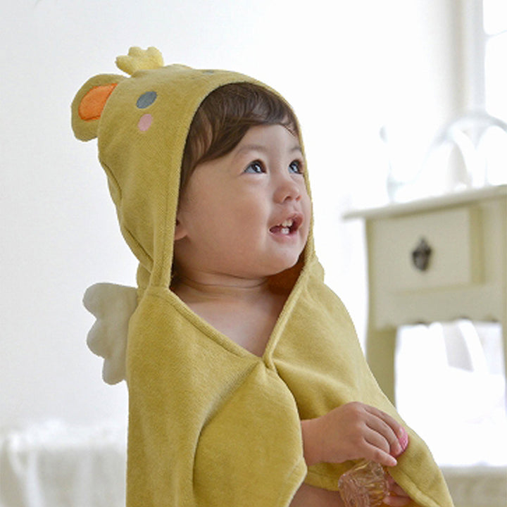 お風呂上りに身体を拭いてフードをかぶると、あっという間に可愛い動物に大変身!背中に付いた天使の羽が愛らしく、耳やしっぽなどが付いたこだわりのデザインのフードバスタオルです。お風呂上りに服を着ない子供をサッと包めて、頭から体までいっぺんに拭けるためとても便利です。