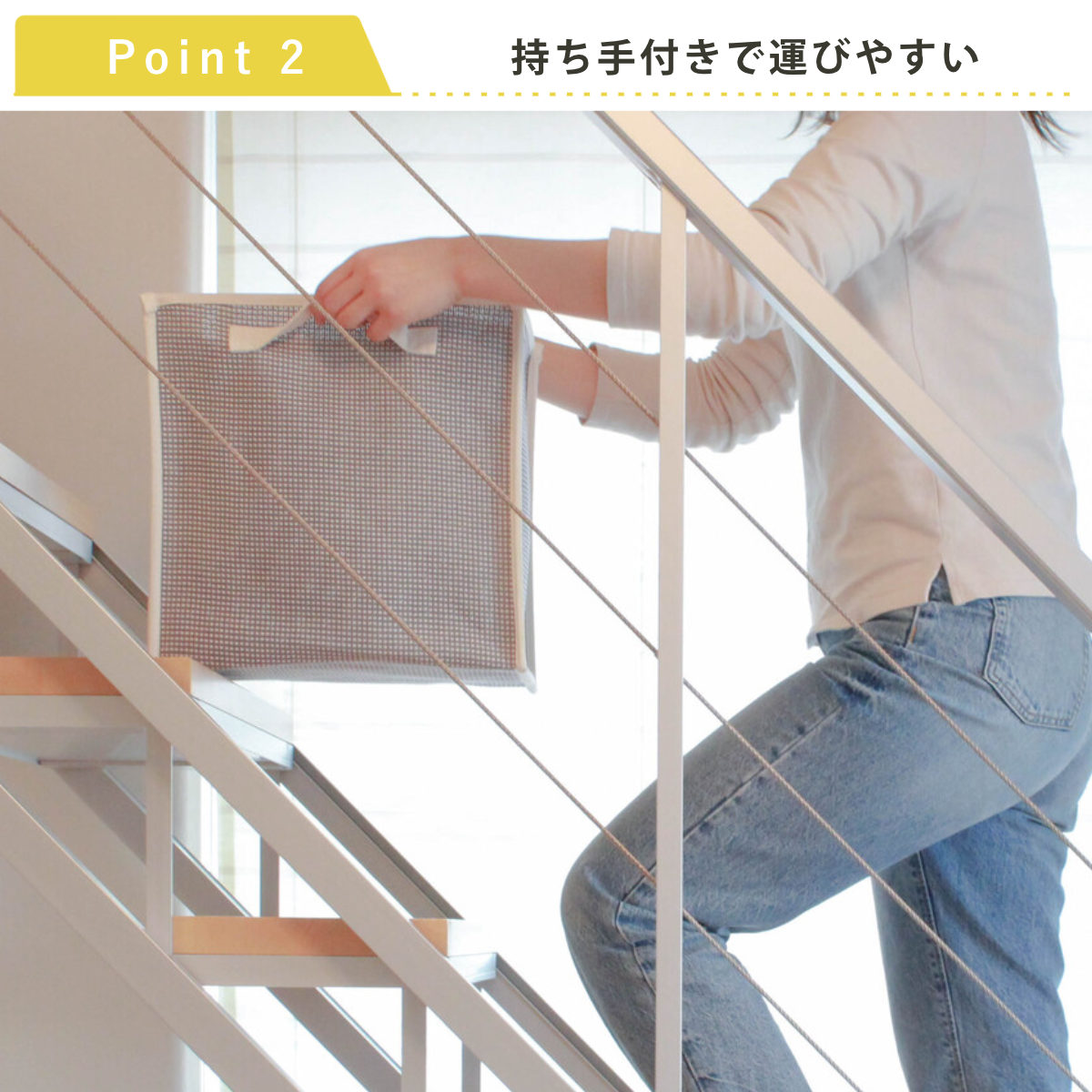 両サイドに持ち手が付いているので、洗濯物をたっぷり入れてもラクに持ち運び可能です。毎日の洗濯がもっと快適になります。