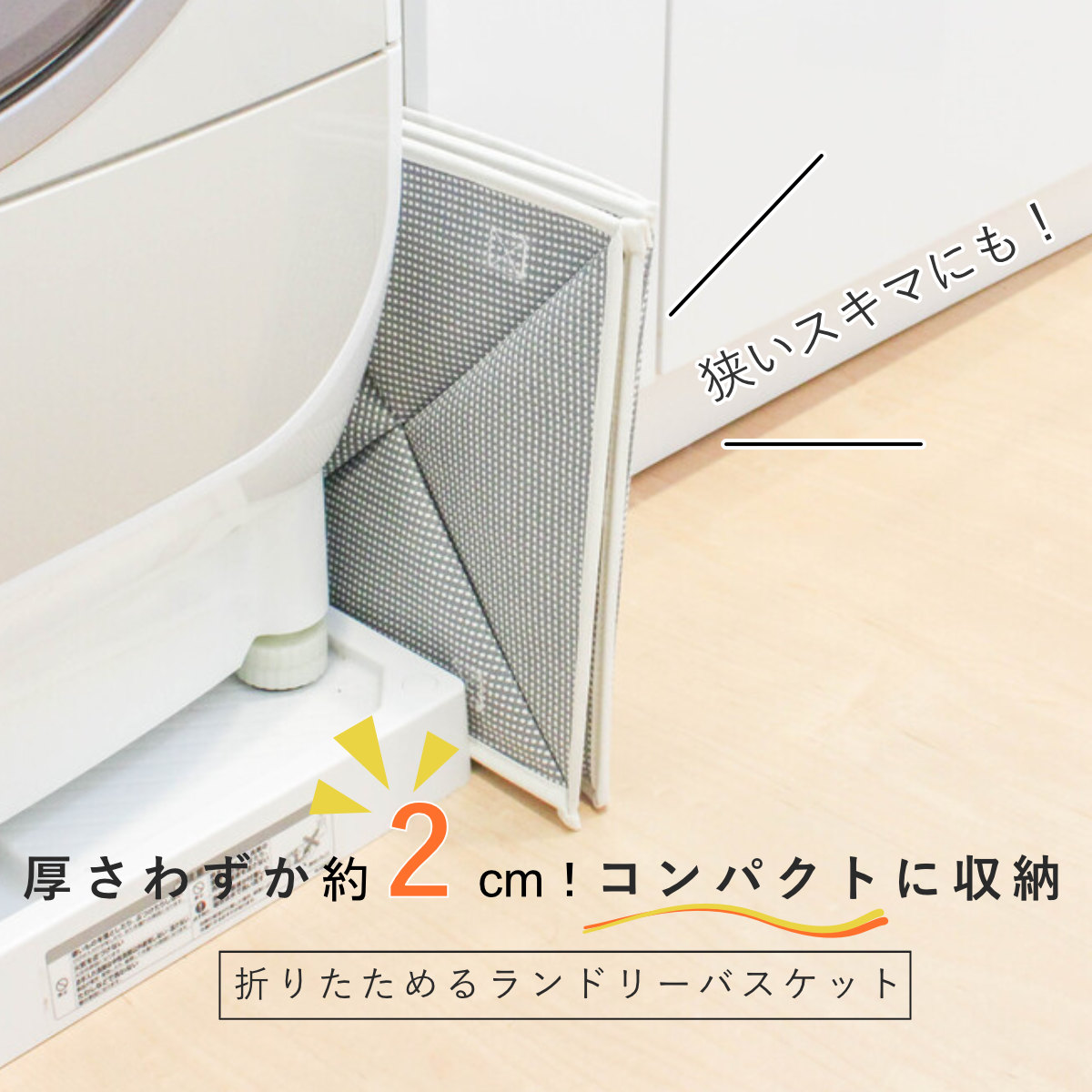 コンパクトで機能的なランドリーバスケットのシングルタイプです。使わない時はサッとおりたたんで、洗濯機の隙間などにスッキリ収納。限られたスペースを有効活用できます。