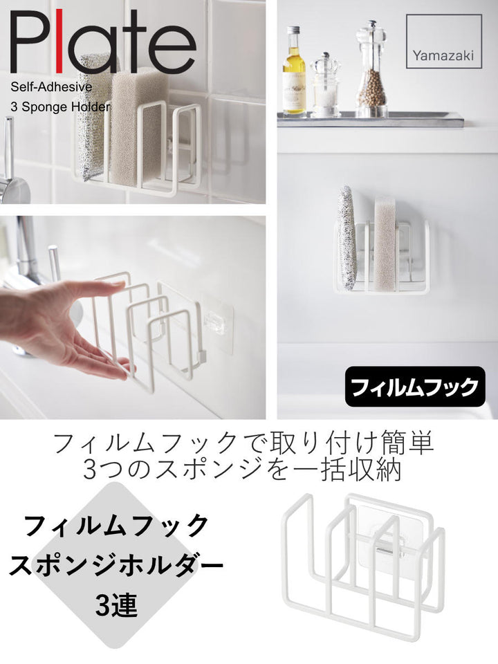 山崎実業 plate フィルムフックスポンジホルダー プレート 3連 ホワイト