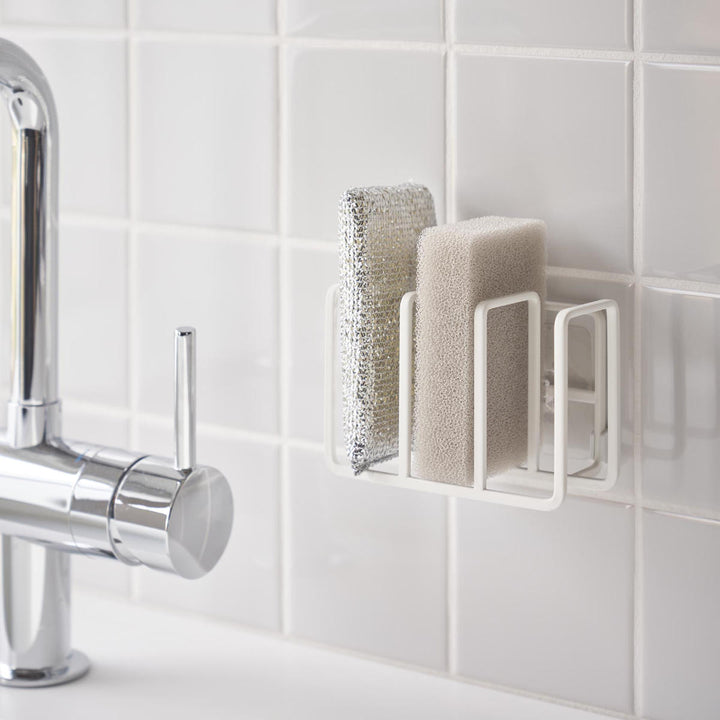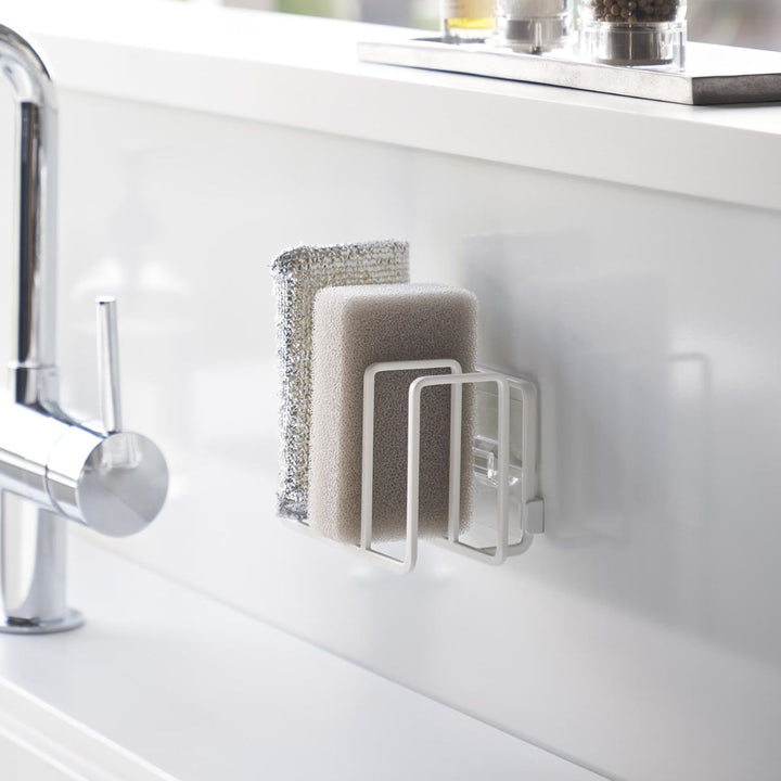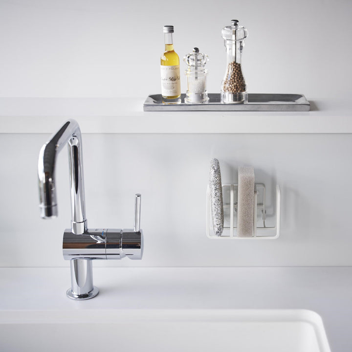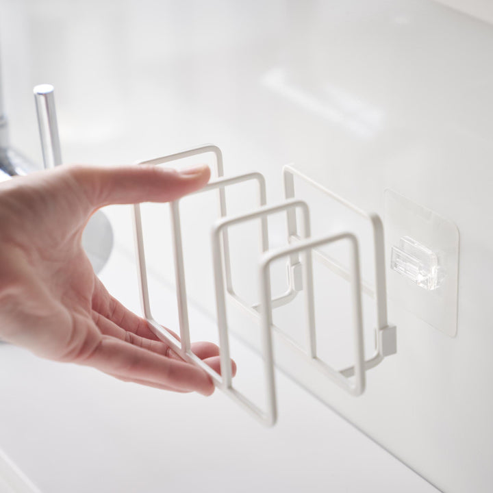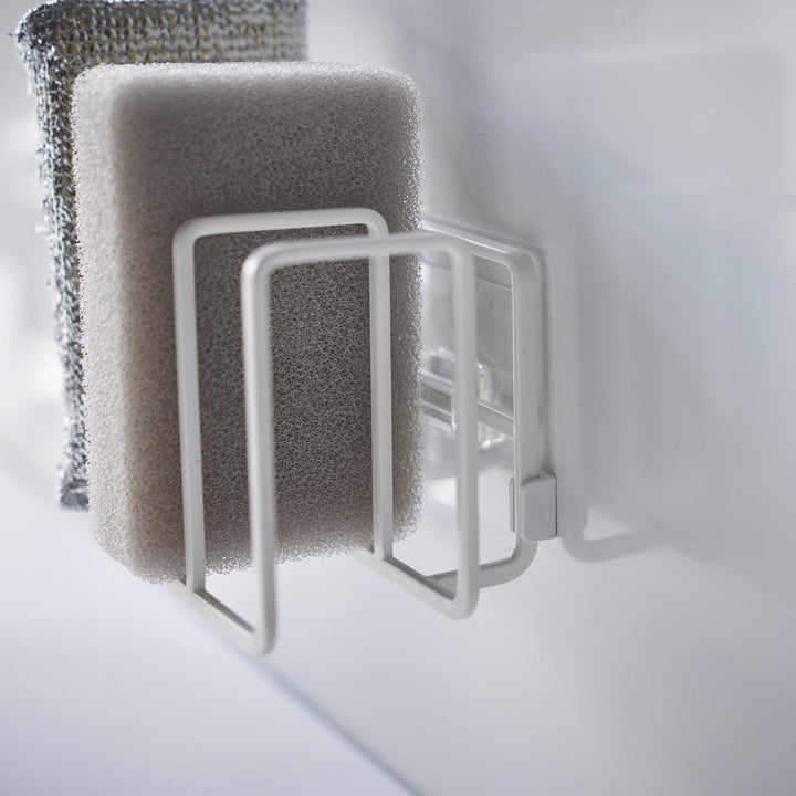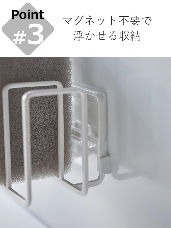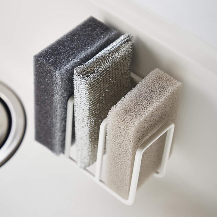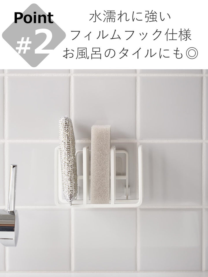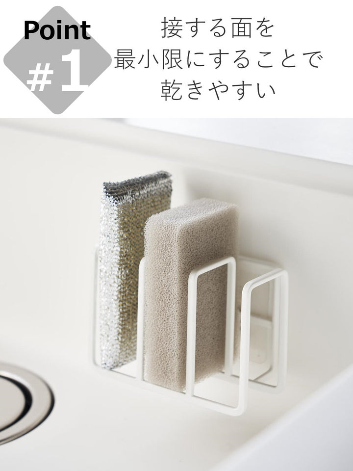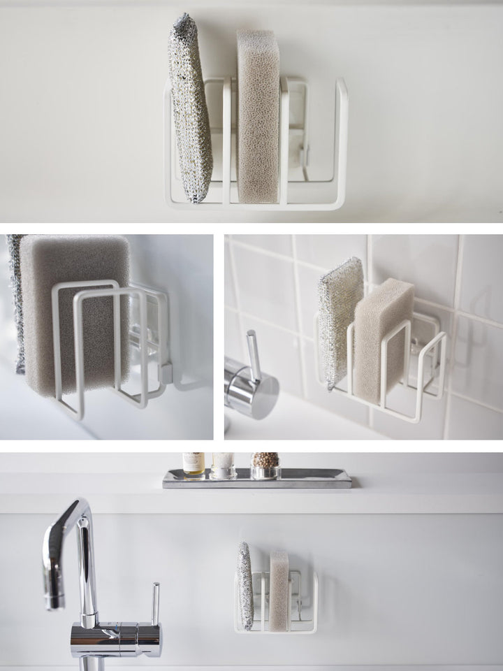 シンク洗い用、食器用スポンジなど、用途に分けてお使いのスポンジを、好きなところに一括で収納できるスポンジホルダーです。また、浮かせて収納するから乾燥させやすく衛生的です。
