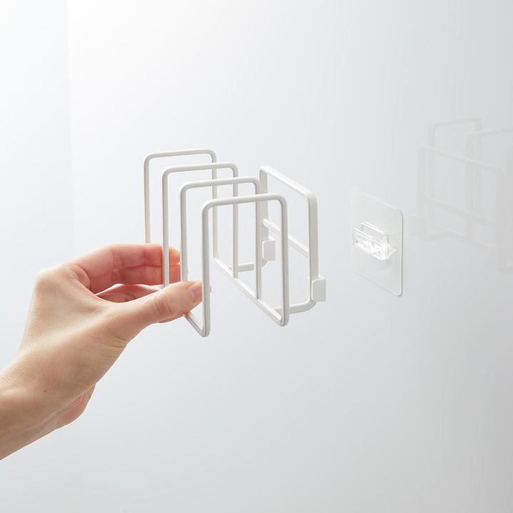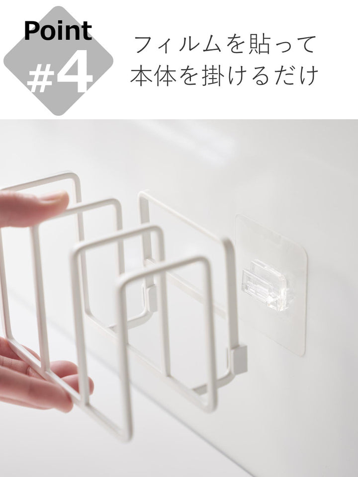 粘着性のフィルムで取り付けるので、マグネットが付かないところでも簡単に取り付けられ、浮かせる収納ができます。