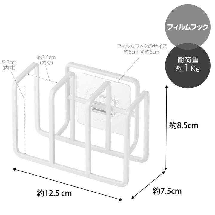 | サイズ | 約 幅12.5×奥行7.5×高さ8.5(cm) フィルムフック接着面:約幅6×高さ6(cm) 各収納部:約幅3.5×奥行6.8×高さ8(cm) |