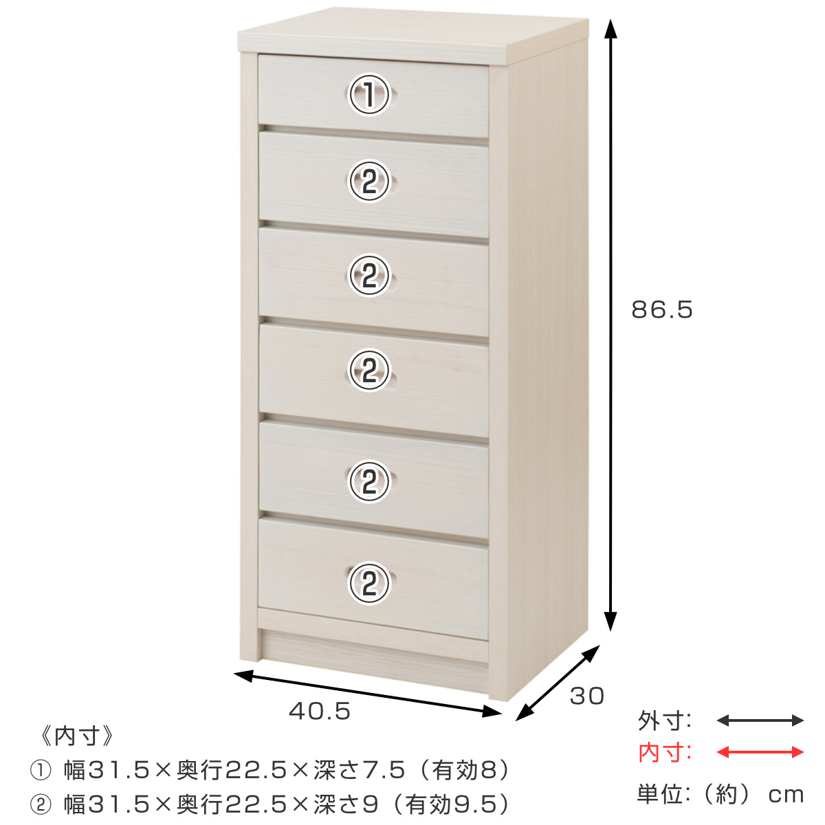 | 引き出し段数 | 6段 |