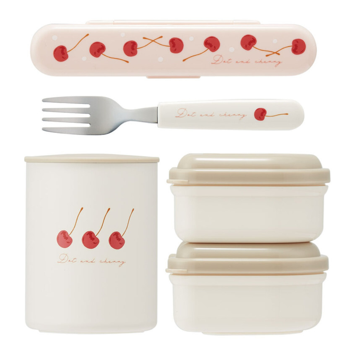 ランチバッグ、フォーク&ケース、保温ジャー、菜入れがセットになったお弁当箱です。ランチバッグに全て収納できるので持ち運びに便利です。フォーク&ケースが付属しているので、別でカトラリーを持っていく必要もありません。