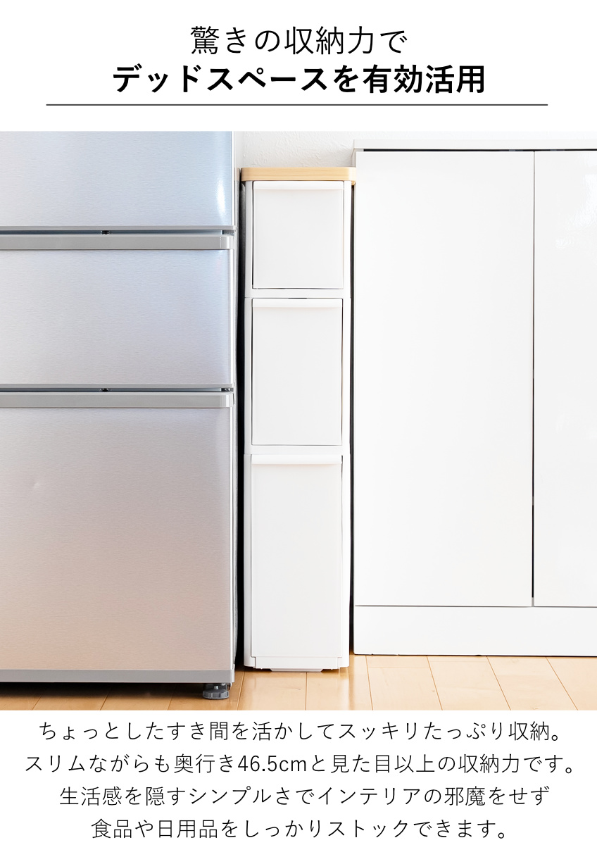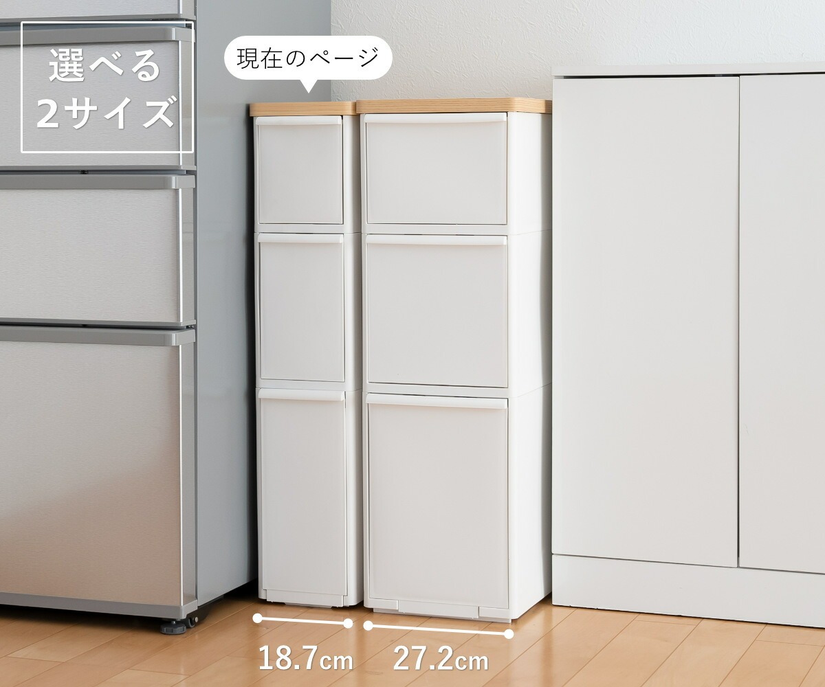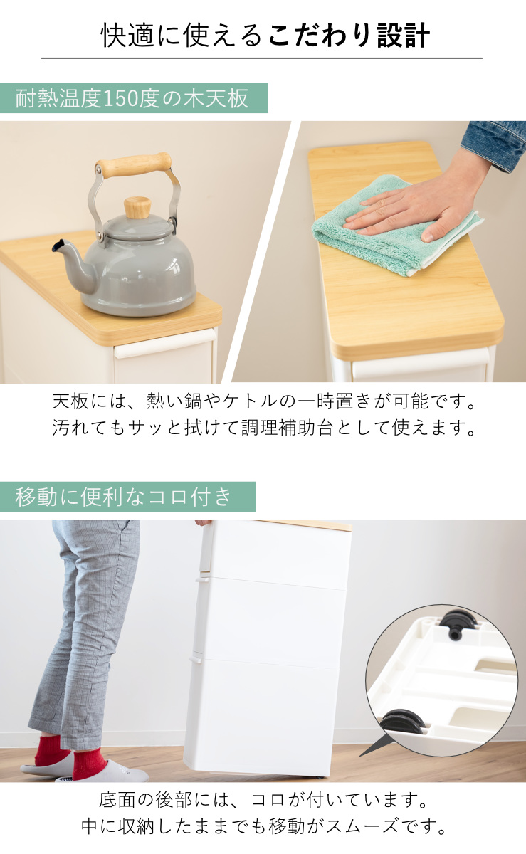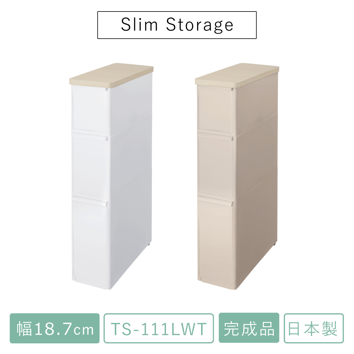 キッチンストッカー スリムストレージ 耐熱木天板ストッカー スリム 幅18.7cm 3段 TS-111LWT