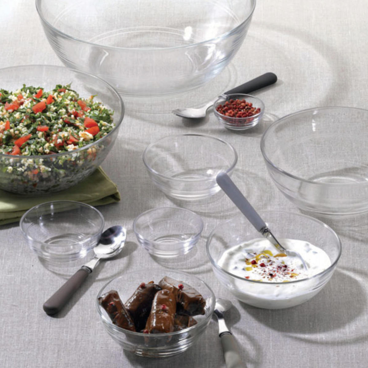 シンプルで飽きのこないデザインが魅力のガラス製ボウルシリーズ。サラダやフルーツ、デザート、調味料入れまで、サイズごとに幅広く活躍します。透明感のあるガラスが料理を美しく引き立て、日常使いからおもてなしのテーブルまで活用できる万能なアイテムです。重ねて収納できるので、省スペースで片付けやすいのも嬉しいポイントです。