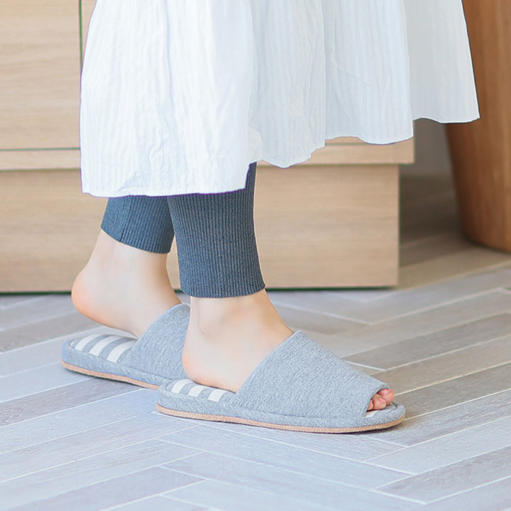 ナチュラルな雰囲気を漂わせる杢ニットボーダースリッパです。長年愛されるスタンダードな形なので、毎日使いにおすすめです。