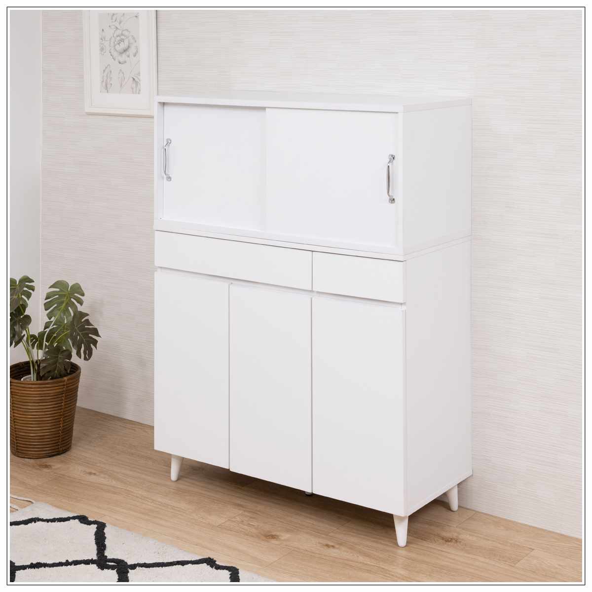 上置き棚 幅90cm 引戸式 ホワイトリビング
