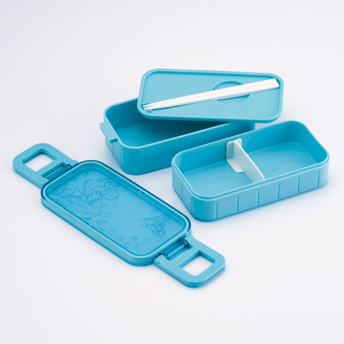 お弁当箱全体に抗菌加工が施されています。直接食材を入れるお弁当箱なので、抗菌加工は嬉しいポイントです。お子様も安心してお使いいただけます。2段タイプのランチボックスで、上段、下段それぞれの容量は300mlです。蓋は2点ロックでしっかりと閉められて安心して持ち運びいただけます。