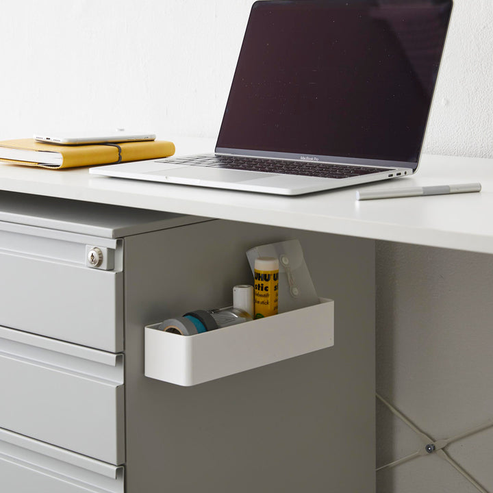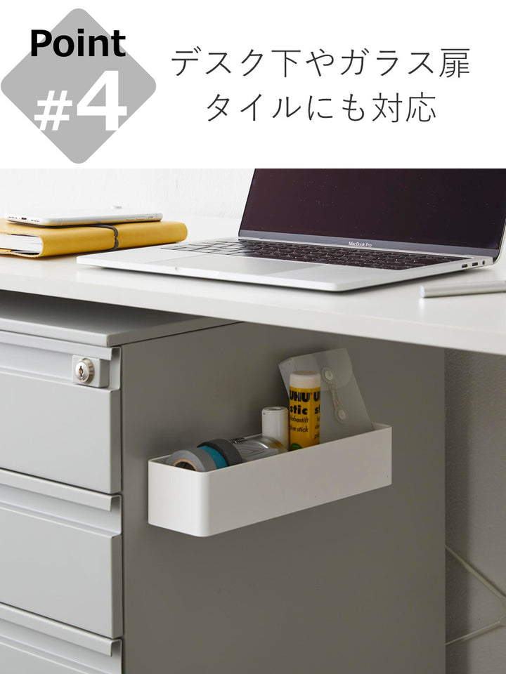 ご家庭だけでなくオフィスの机の横に貼り付ければ、小物の収納スペースになります。ガラス扉やタイルなどにも対応しているので、アイデア次第で色んな使い方ができます。
