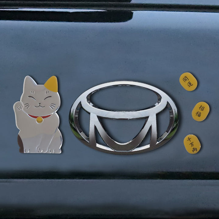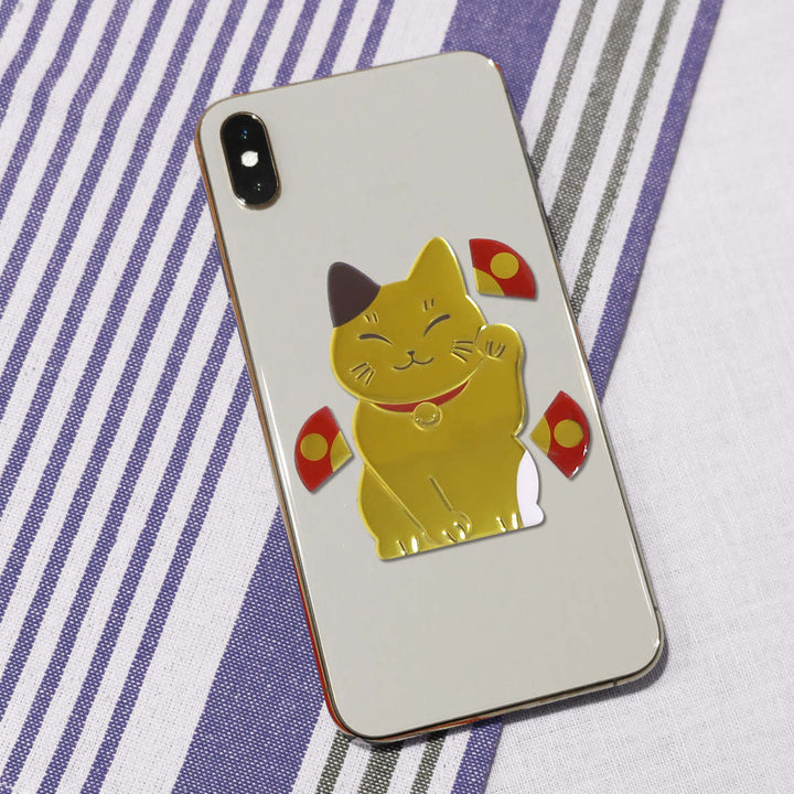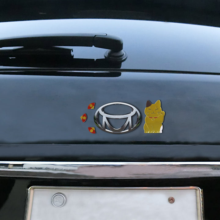 メタリックな質感に、ぷっくりとした立体感が可愛いエンブレムステッカーです。招き猫の上げている手が右手ならお金を、左手なら人を招くと言われています。