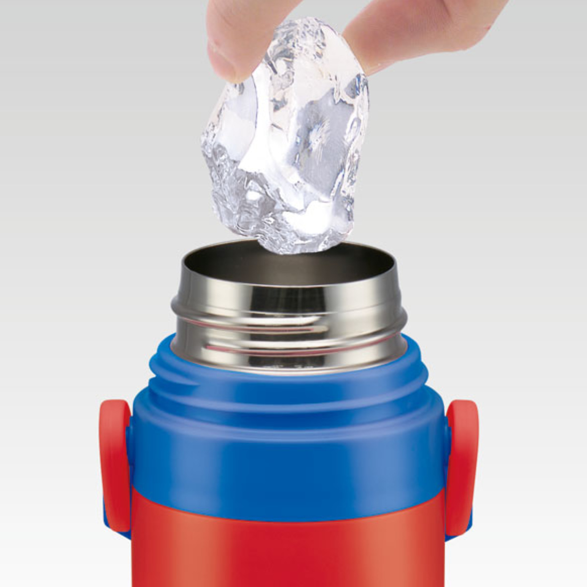 口径が広いので大きな氷も入れやすく、しっかり洗えて清潔に保てます。キャップユニットに付属しているパッキンは2つだけなので、お手入れ簡単です。
