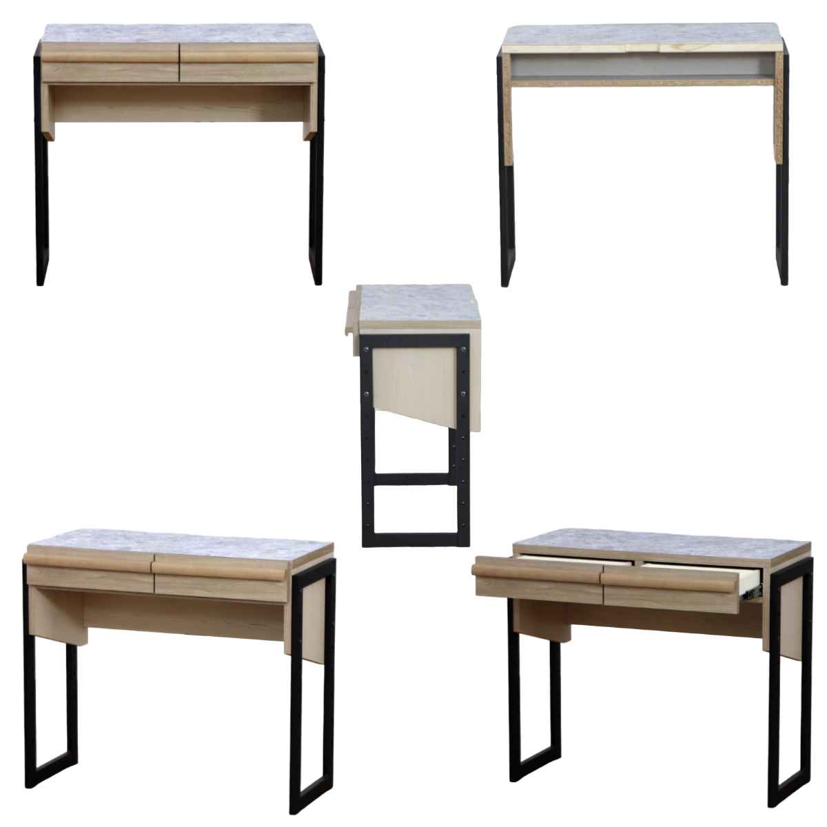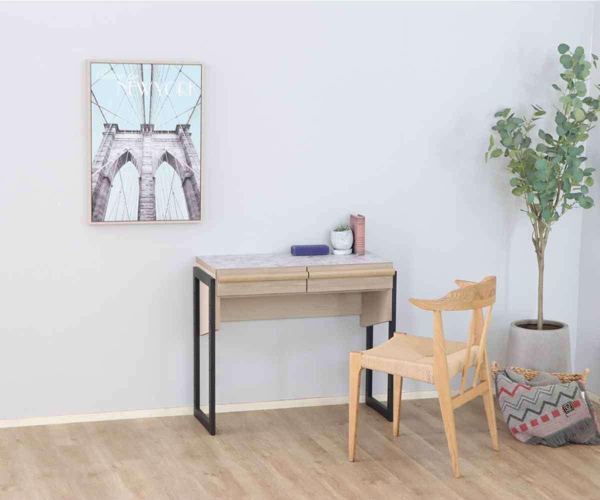 ●木目の温かみと石目調の天板がアクセントとなっておしゃれなワークデスクです。