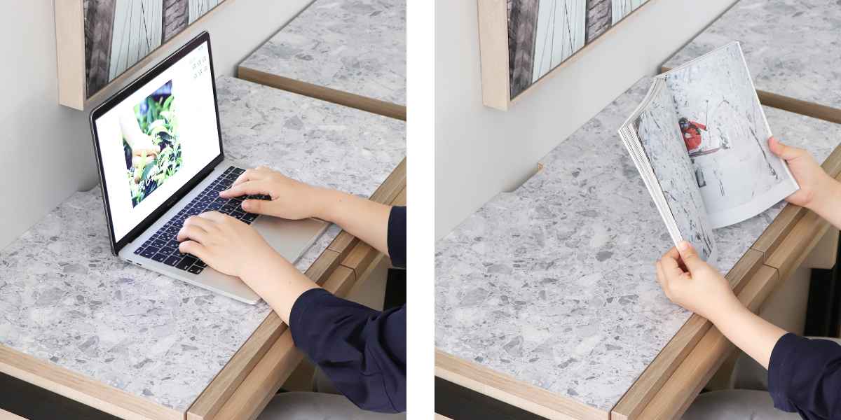 幅83.5cmのデスクはコンパクトで、一人暮らしやワンルームなどの環境でも、場所を取らずに設置が可能です。趣味や日常の作業に使えるちょっとした作業台として、気軽にワークスペースを作ることができます。