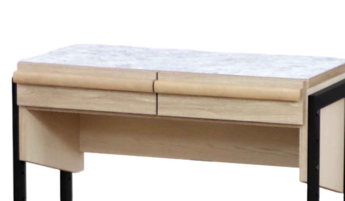 | 材質 | 天板:メラミン化粧板 本体:プリント化粧板 前板:オレフィン化粧板 脚部:スチール(粉体塗装) 取っ手 栗材(ウレタン塗装) |