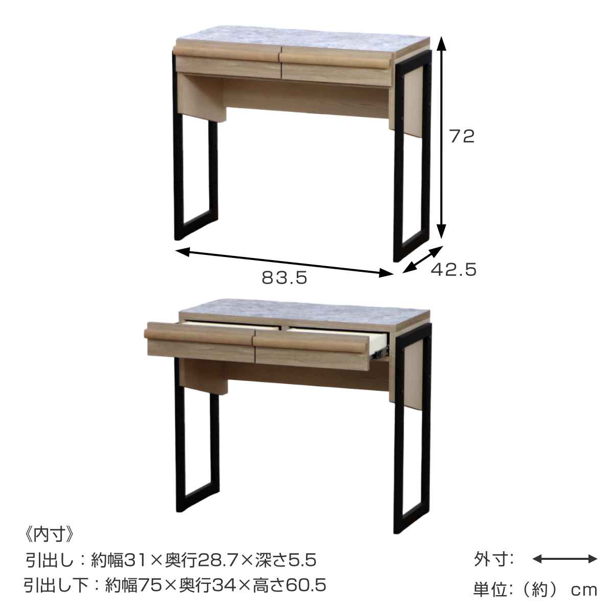 | サイズ | 約 幅83.5×奥行42.5×高さ72(cm) |