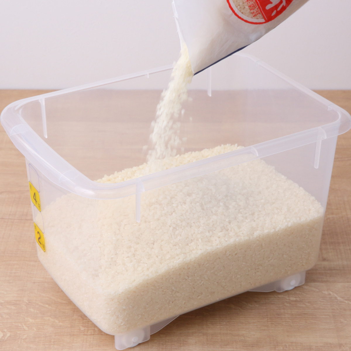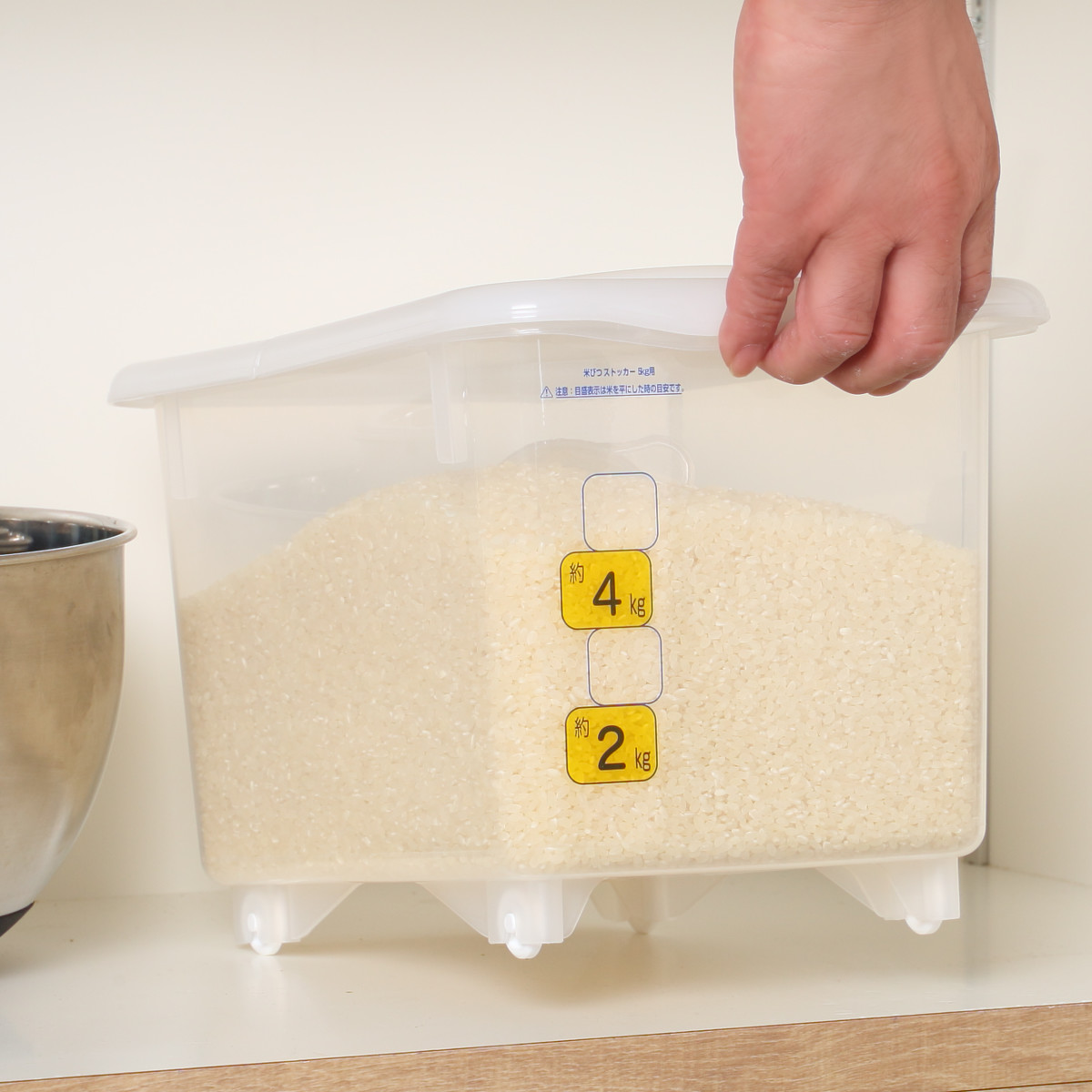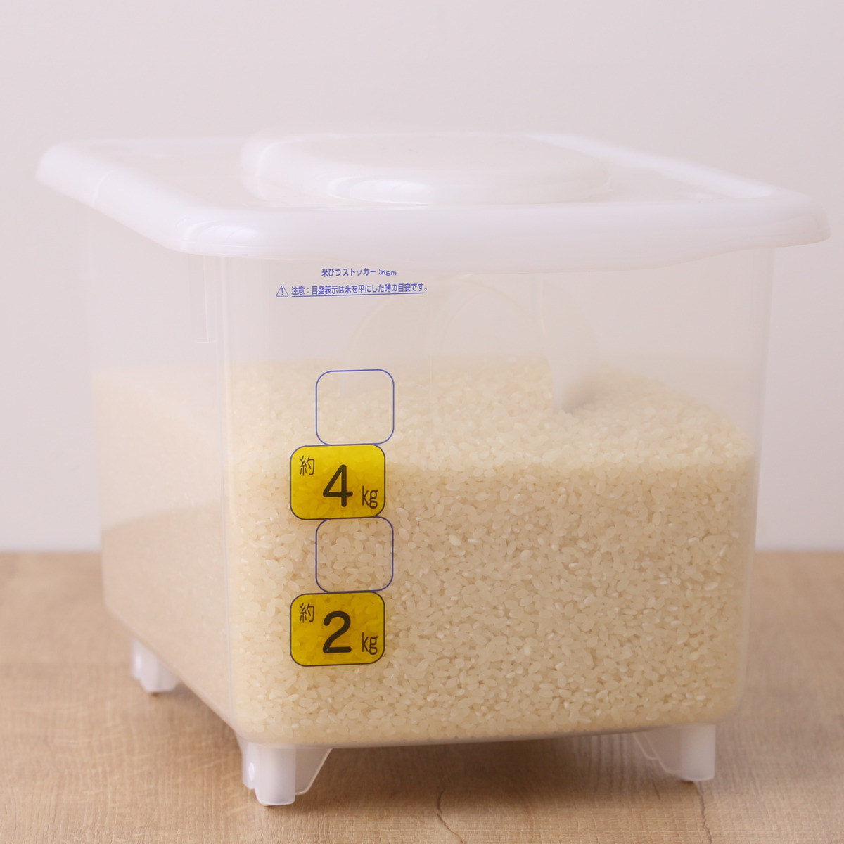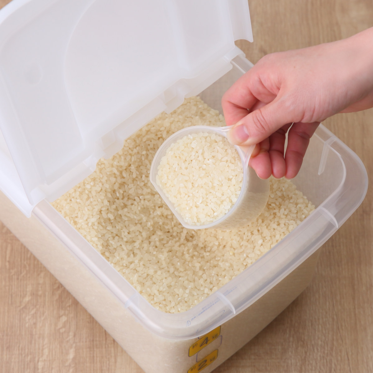 本体が透明で目盛が付いているので、お米の残量が一目で分かります。中の状態が見えることで、お米の買い足しのタイミングもわかりやすく買い忘れ防止にもなります。