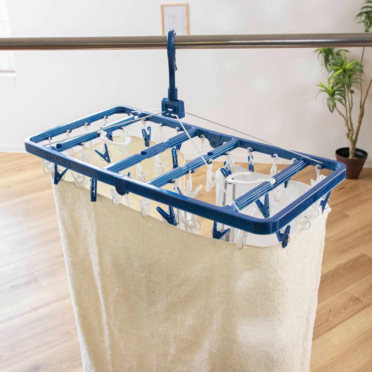 フレームの対向する場所に同じ色のピンチを配色していますので、タオルなどの渡し干しがしやすくなっています。