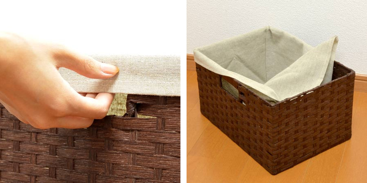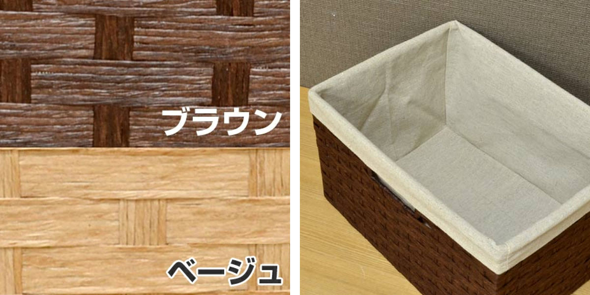 側面は軽くて丈夫なペーパー素材 細い紙をのりで固めて編んでいます。 |